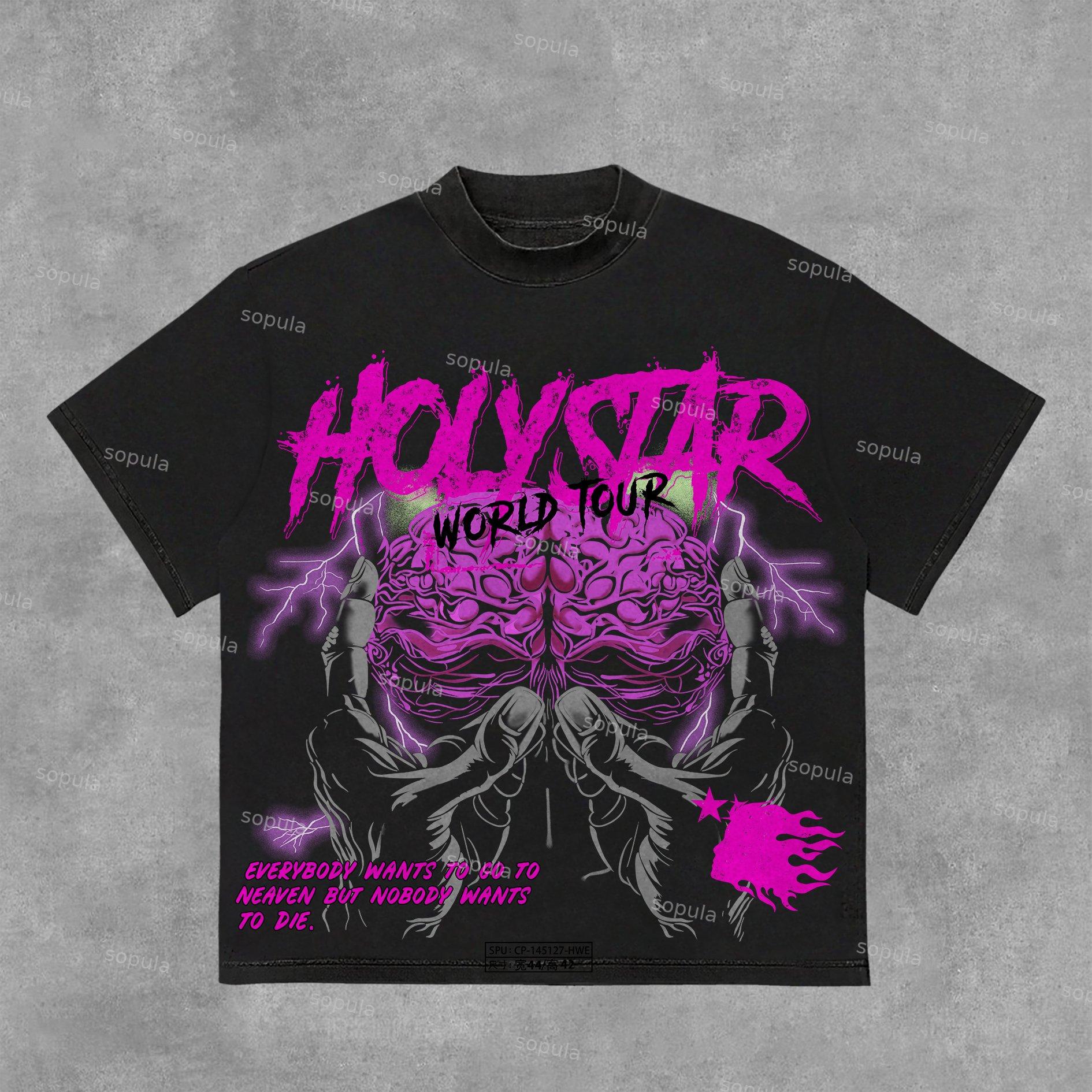 Sopula Studio Vintage World Tour Brain Graphic Street Cotton T-Shirt
