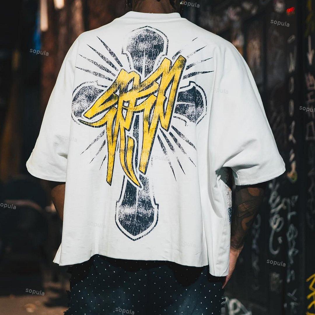 Sopula Vintage Jesus Cross Graphic Casual Street Basketball T-Shirt. SPU: CP-125680-LSX Fabric Name: 100% Cotton Pattern: Jesus Cross Graphic Process: Printed Style: Vintage Length: Regular Collar: Round Neck Popular Elements: Print Sleeve Type: Short Sleeve Occasion: Daily, Street Theme: Summer