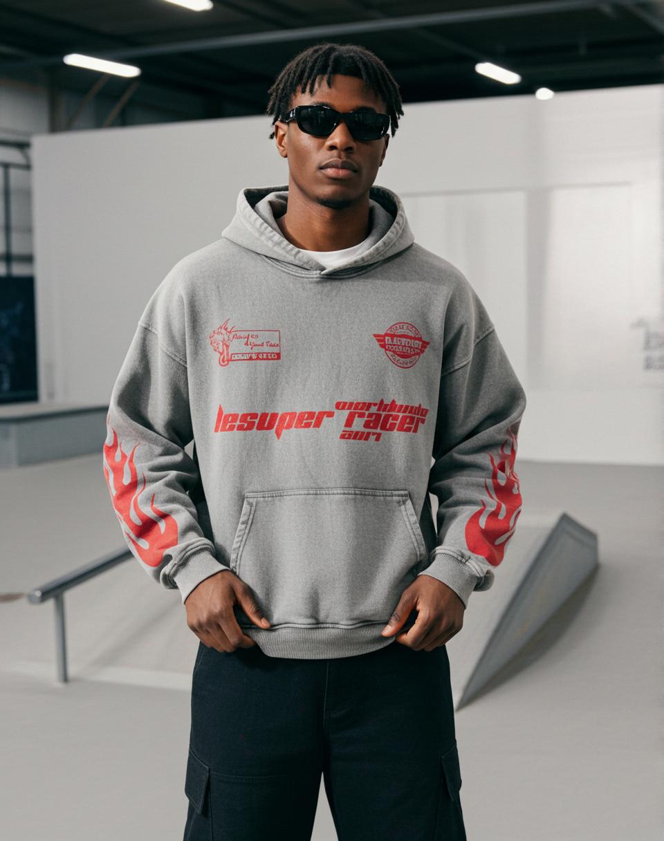 Sopula Vintage Lesuper Racer On The Way Graphic Acid Washed Oversized Hoodie. SPU: CP-189867-LSX Fabric Name: 100% Cotton Pattern: Lesuper Racer On The Way Process: Printed Style: Vintage Length: Regular Collar: Hoodie Collar Popular Elements: Acid Washed, Pocket Sleeve Type: Drop Shoulder Sleeve Occasion: Daily, Street Theme: Spring, Fall, Winter
