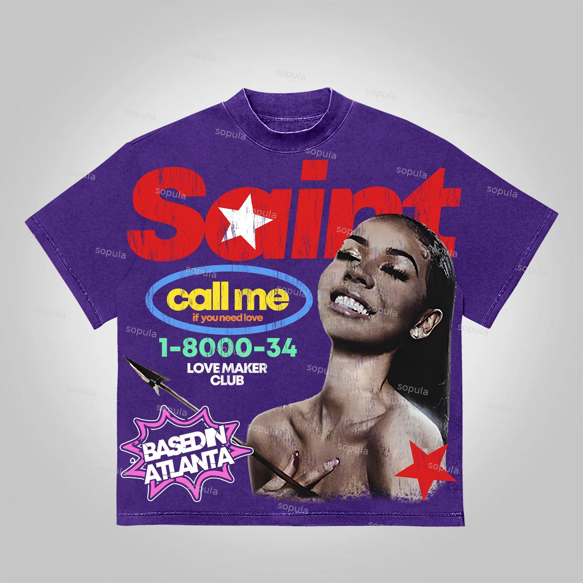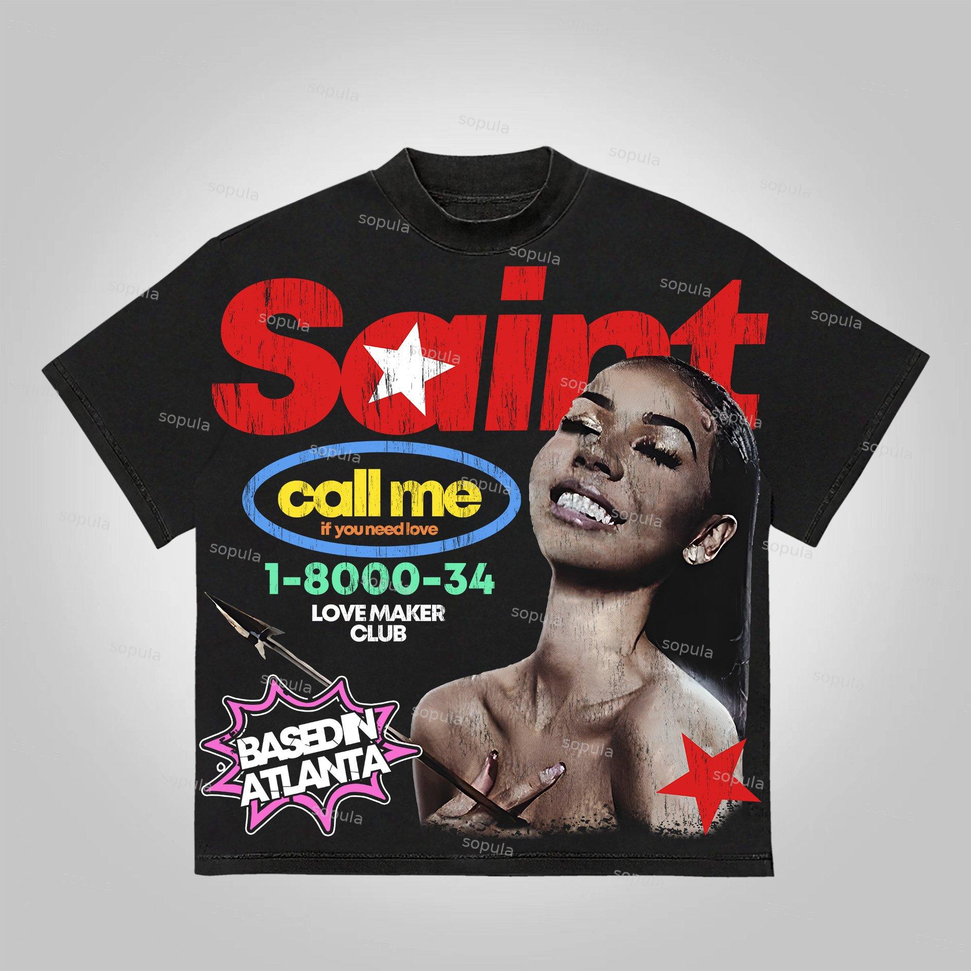 Sopula Vintage Saint Call Me If You Need Love Graphic Short T-Shirt