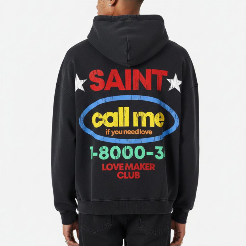 Sopula Vintage Saint Call Me If You Need Love Graphic Acid Washed Oversized Hoodie. SPU: CP-189271-LSX Fabric Name: 100% Cotton Pattern: Saint Letter Graphic Process: Printed Style: Vintage Length: Regular Collar: Hoodie Collar Popular Elements: Acid Washed, Pocket Sleeve Type: Drop Shoulder Sleeve Occasion: Daily, Street Theme: Spring, Fall, Winter