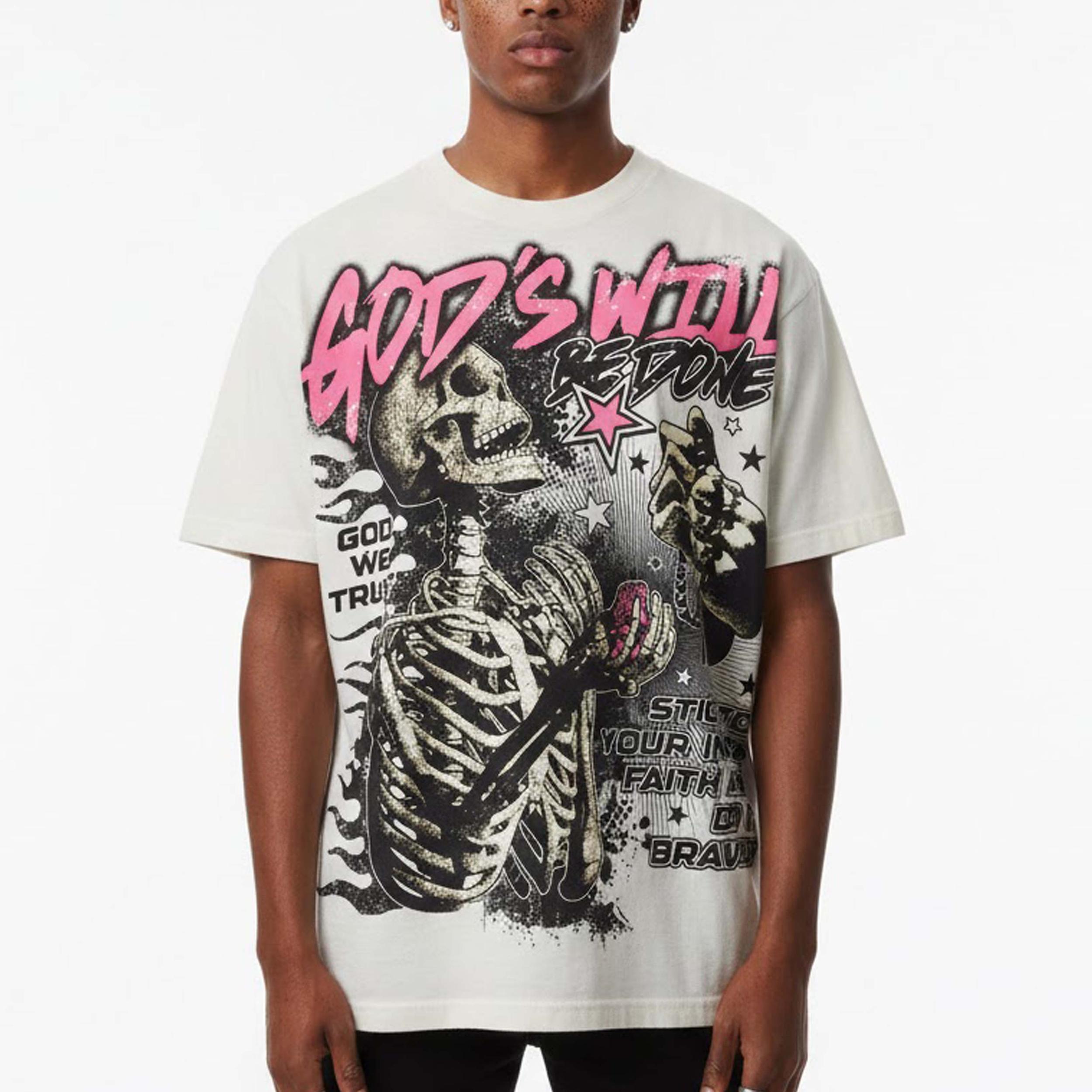 SPU: CP-165381-ZYL Fabric Name: 100% Cotton Pattern: Skull Graphics Process: Printed Style: Vintage Length: Regular Collar: Round Neck Popular Elements: Skull Print Sleeve Type: Short Sleeve Occasion: Street, Daily Theme: Summer