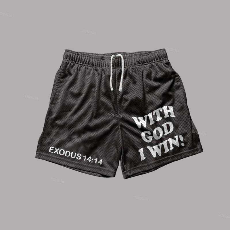 Sopula With God I Win Print Casual Street Mesh Shorts
