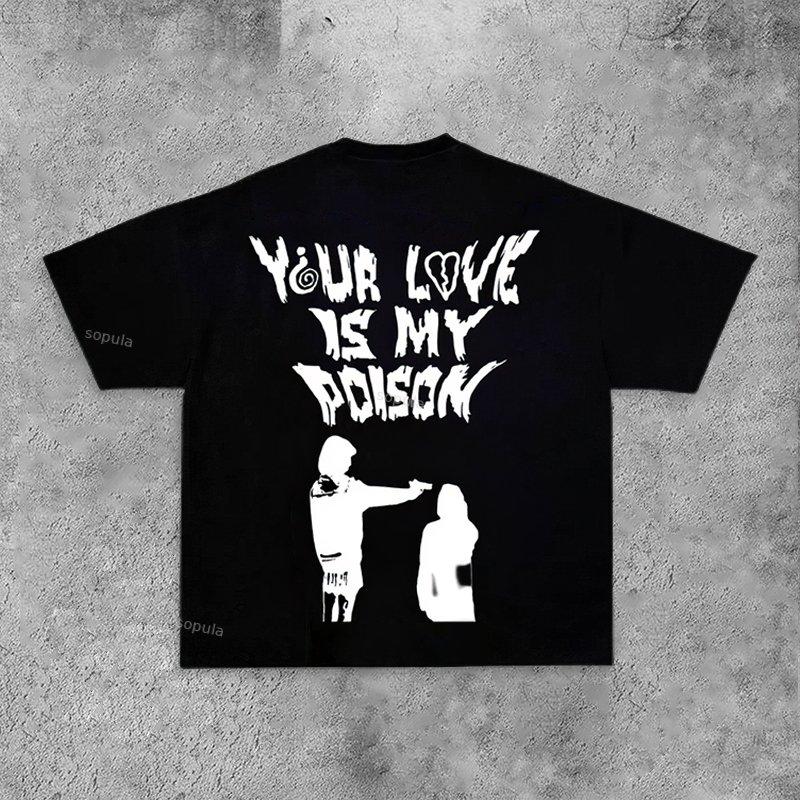 Sopula Your Love is My Poison Print T-Shirt. SPU: CP-89318-QYP Fabric Name: 100% Cotton Pattern: Letter Print Process: Printed Style: Fashion Length: Regular Collar: Round Neck Popular Elements: Letter Print Sleeve Type: Short Sleeve Occasion: Daily Theme: Summer