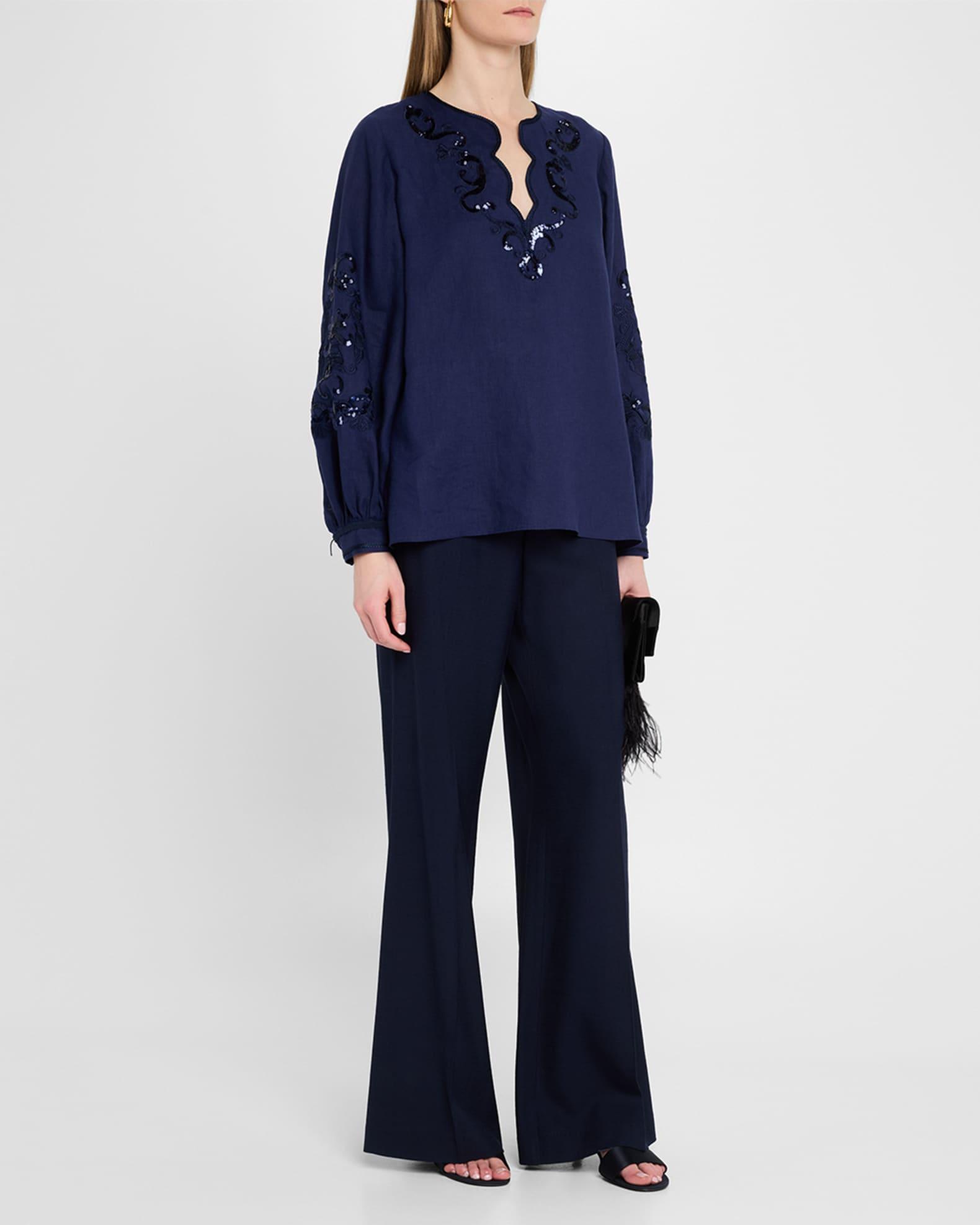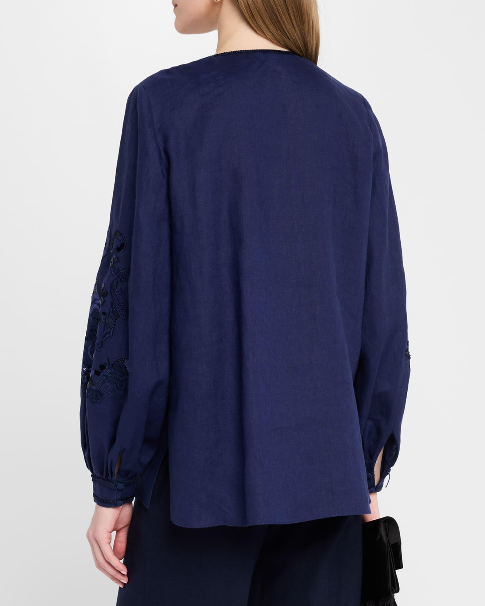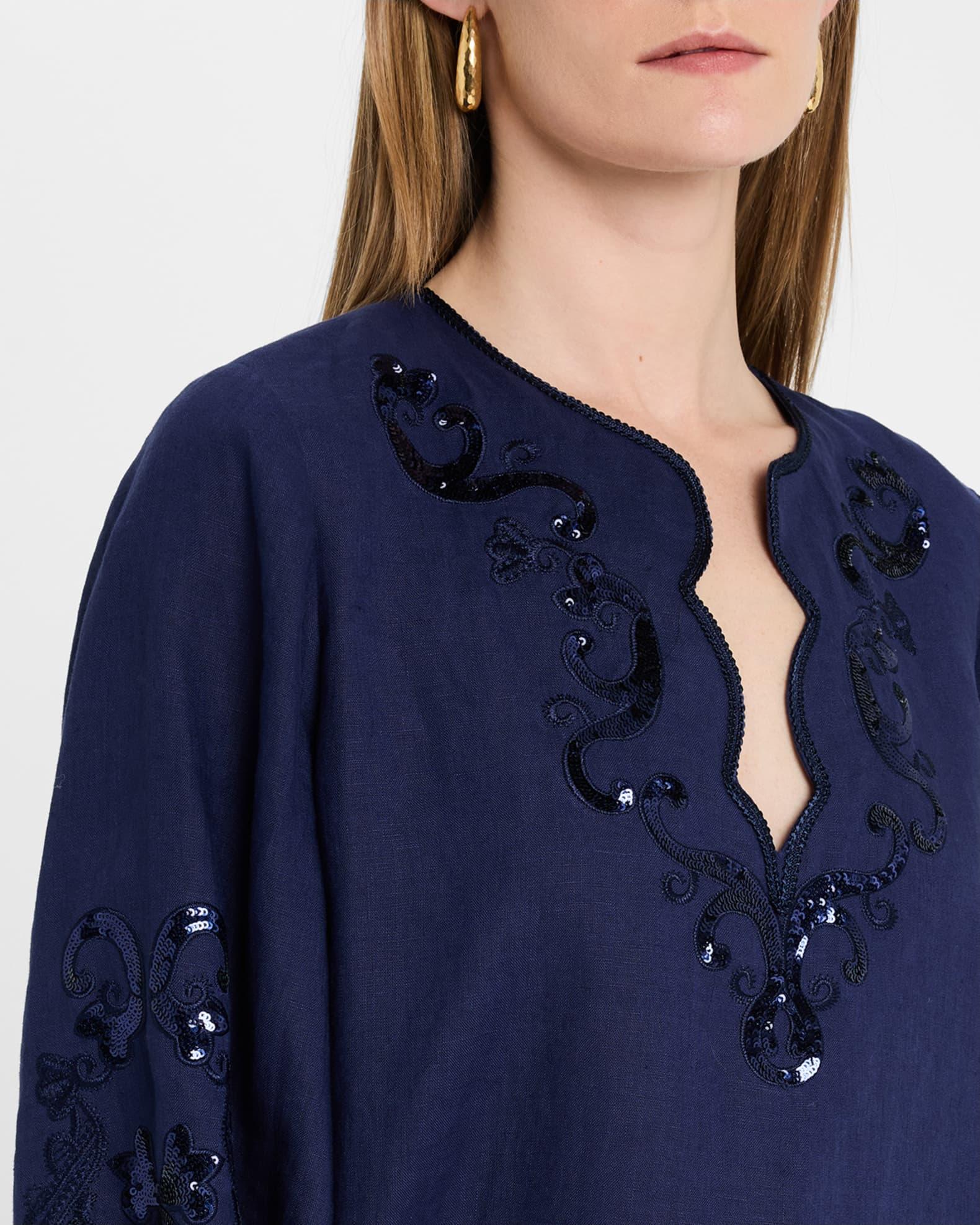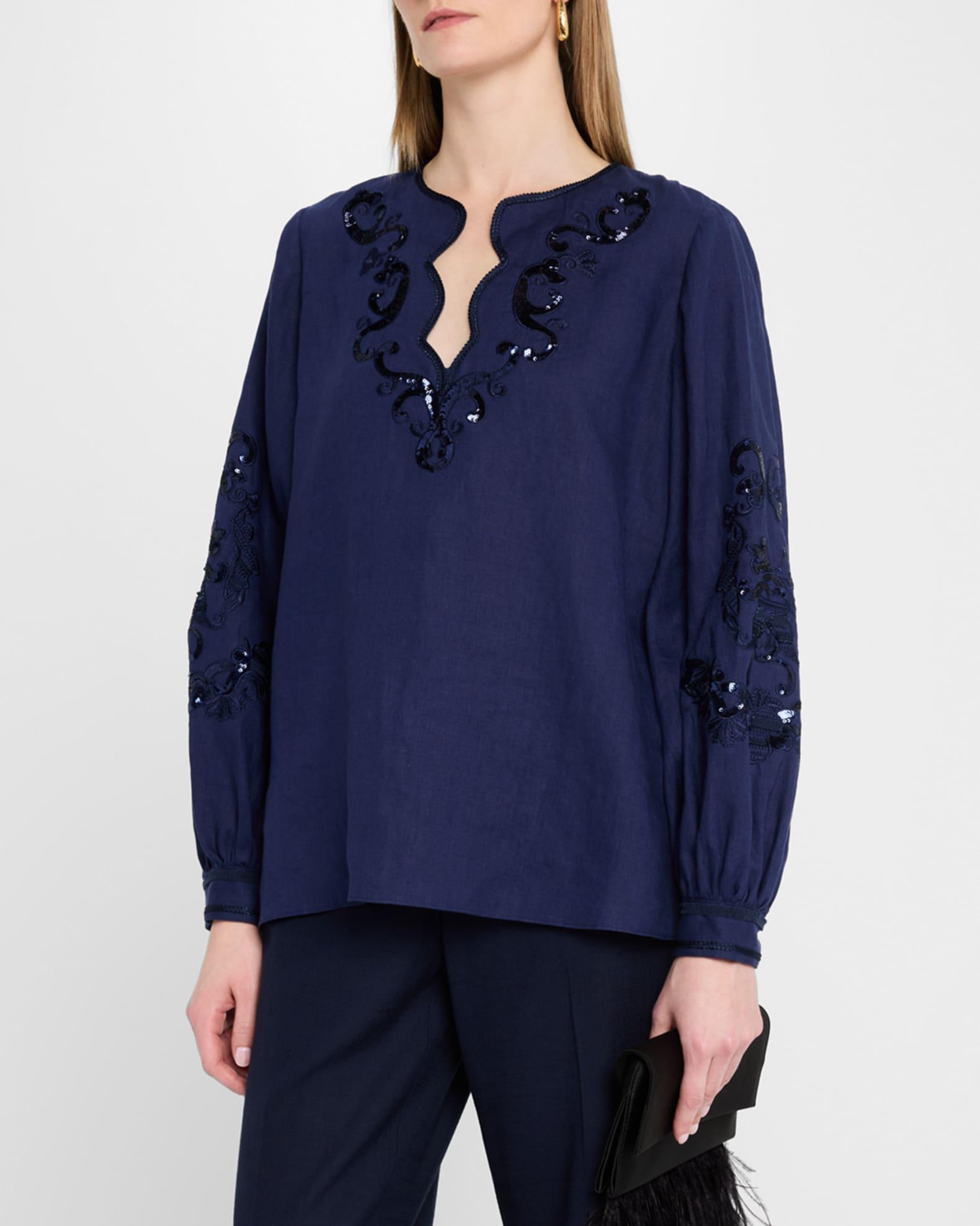 Soraya Sequin Embroidered Linen Blouse