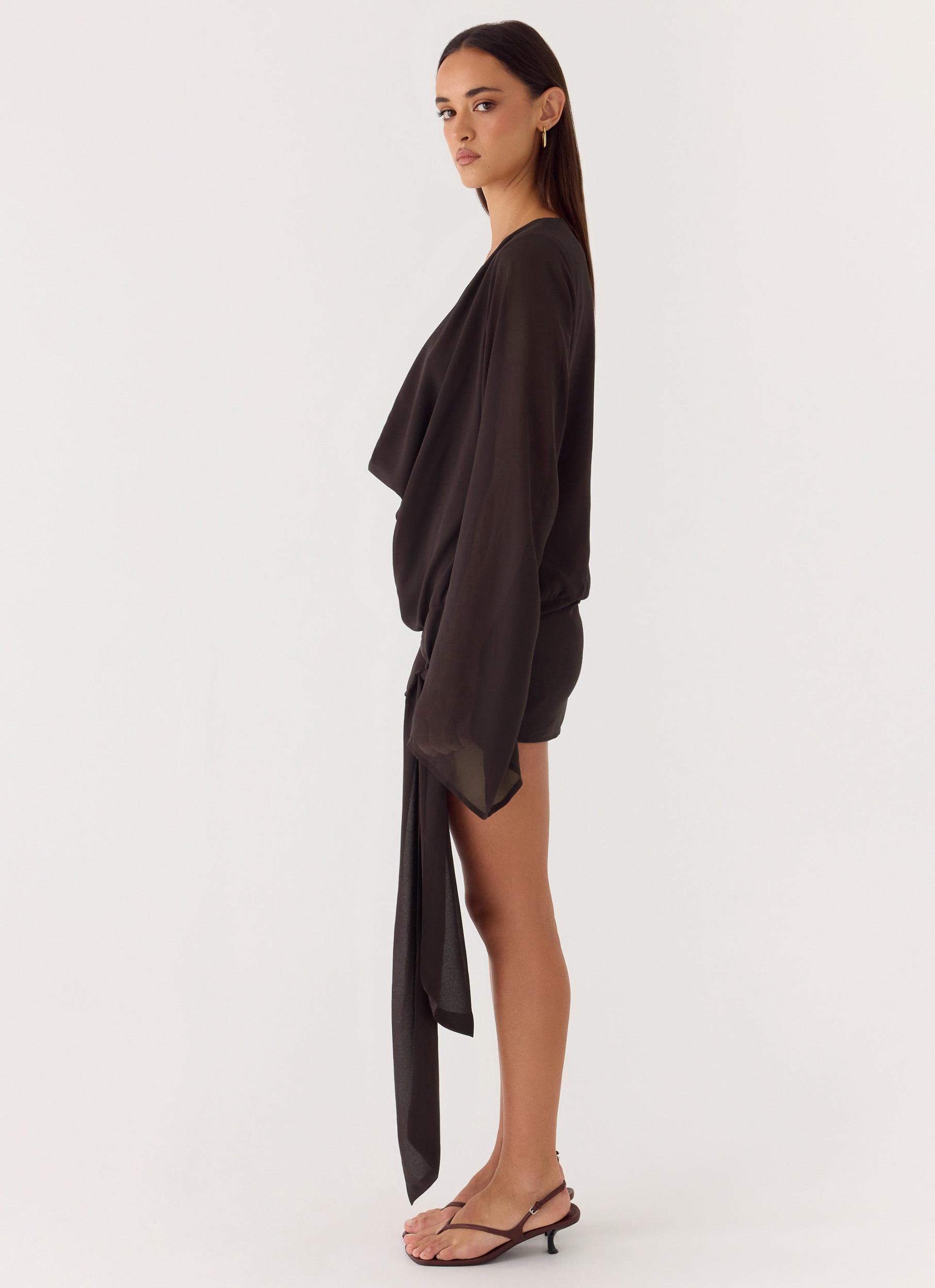 Peppermayo Exclusive The Sorrel Long Sleeve Mini Dress is made for evenings that shimmer from sunset to after-dark celebrations. Featuring a mini length with long sleeves and a body-skimming silhouette, this dress drapes effortlessly in soft, flowy chiffon. Fully lined and finished with a side invisible zipper, it’s an editorial-ready piece for confident, stylish nights. - Mini length- Long sleeves- Body-hugging fit in flowy fabric- Side invisible zipper- Fully lined- Fabric: 90% Polyester, 10% Spandex, Lining: 95% Polyester, 5% Spandex Size AU 8 / US 4 garment measurements: Bust: 101 cm / 39.76 inWaist: 93 cm / 36.61 inHem: 98 cm / 38.58 inCentre back length: 78 cm / 30.71 inSleeve length: 73 cm / 28.74 in Roberta is 177cm and wears size AU 6 / size US 2