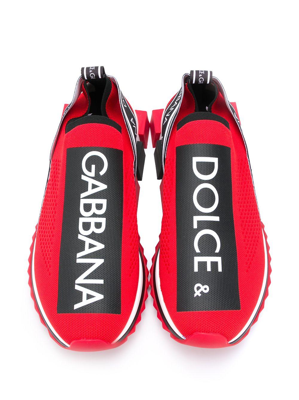 Dolce & Gabbana Sorrento knit sneakers | Red | red/white/black | sock-style vamp | logo print to the front | branded heel counter | logo pull-tab at the heel | round toe | slip-on style | ridged rubber sole | This piece fits small – take one size up | Rubber/Polyester/Rubber/Polyester | Slip-On | Sneakers | Shoes | Men