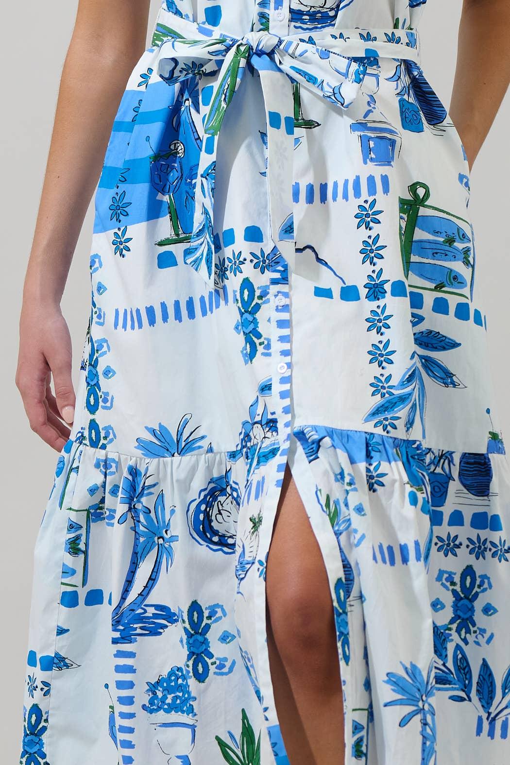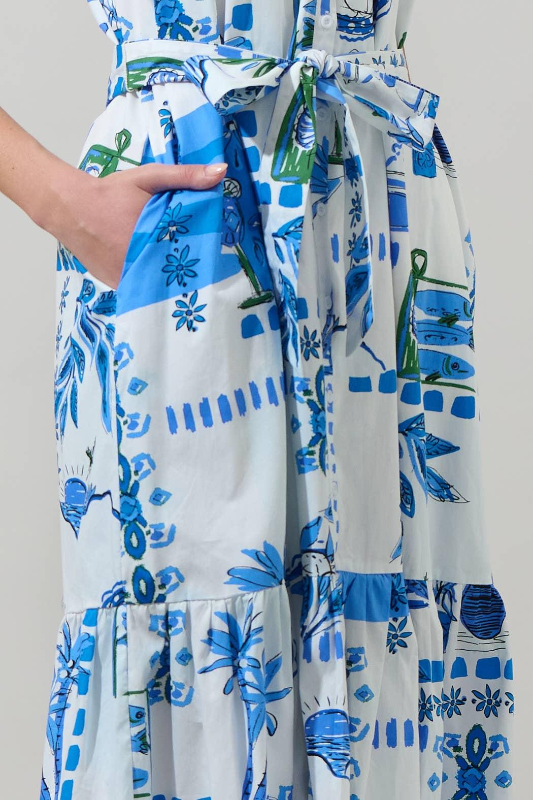 - Belted - Pockets - V-neck - Breathable - Color: White Blue Grn