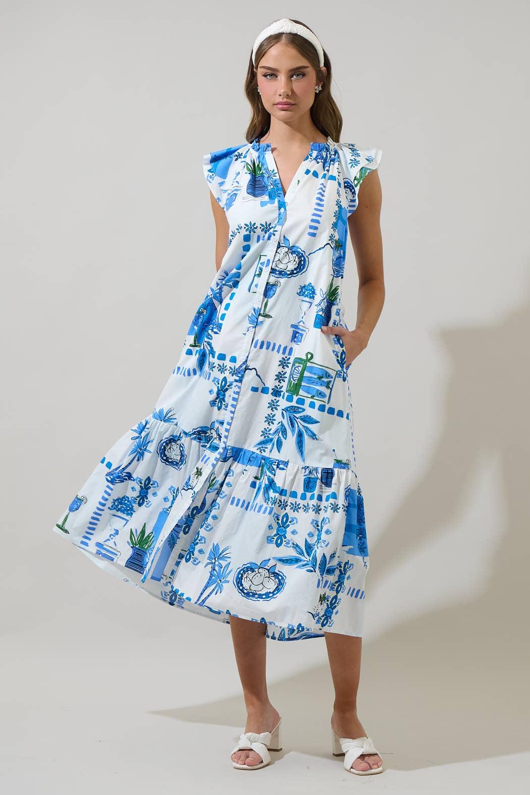 Stay stylish with minimal effort! This dress features a split neckline and a flare bodice, framed by short cap sleeves. A belt wraps around the waist and secure at the back, followed by a button-down design. Pair it up with sandals and crossbody bag.