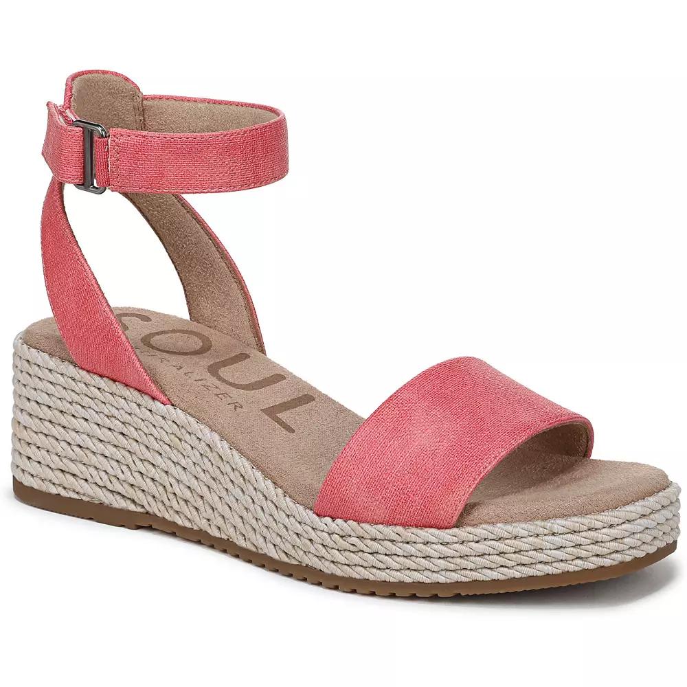 Elevate your summer style with the SOUL Naturalizer Gloria Women's Espadrille Sandals, designed with soft materials and a comfortable wedge heel for all-day wear. The timeless espadrille silhouette combined with trendy details makes these shoes a perfect blend of fashion and function for any occasion.Elevate your summer style with the SOUL Naturalizer Gloria Women's Espadrille Sandals, designed with soft materials and a comfortable wedge heel for all-day wear. The timeless espadrille silhouette combined with trendy details makes these shoes a perfect blend of fashion and function for any occasion.FEATURES ContourFIT technology: sculpted insole Antimicrobial sock lining Arch support with memory foam Soft foam lining Lightweight and flexible outsoleDETAILS Synthetic upper Fabric lining TPR outsole Open toe Hook-and-loop tape closure Foam footbed Multi-directional outsole 2.25-in. heel height 1.00-in. platform height Spot clean Imported The antimicrobial properties do not protect users or others against bacteria, viruses, germs, or other disease organisms. Size: 8 Wide. Color: Coral. Gender: female. Age Group: adult.