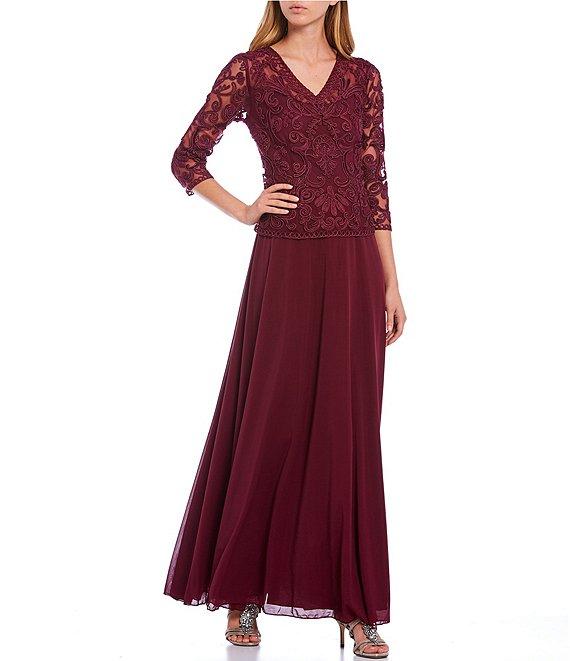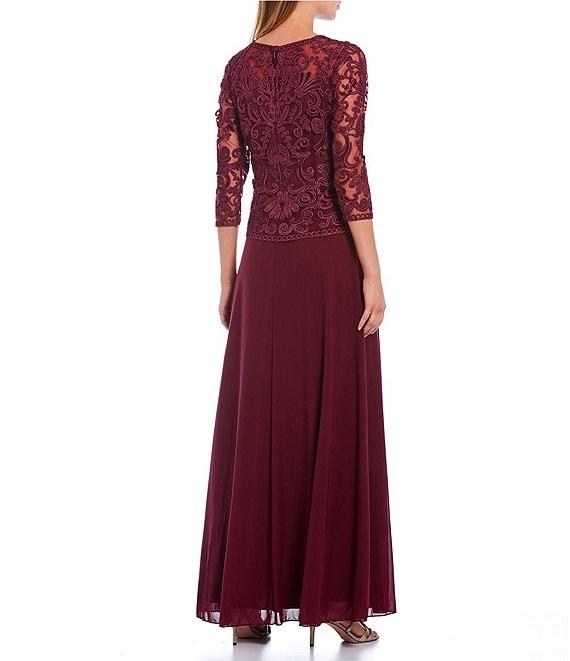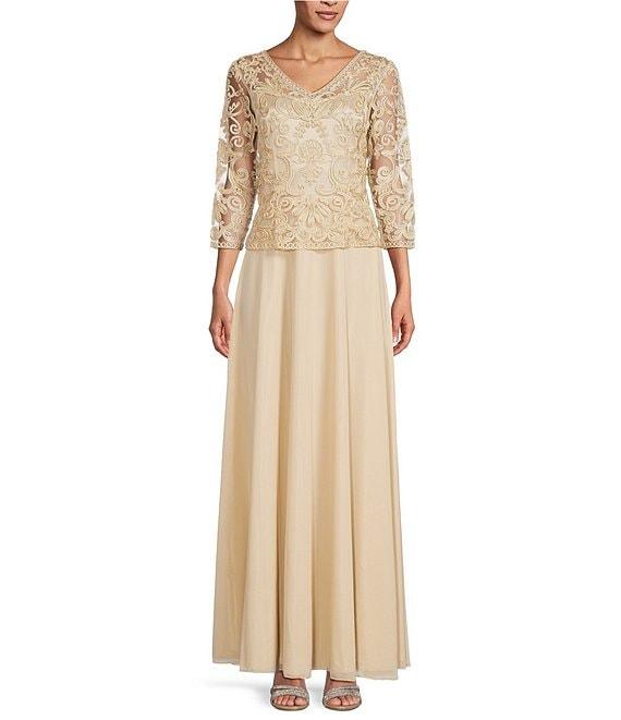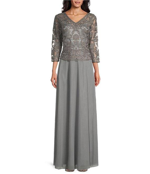 Soulmates V-Neck 3/4 Sleeve Soutache Lace Bodice A-Line Gown