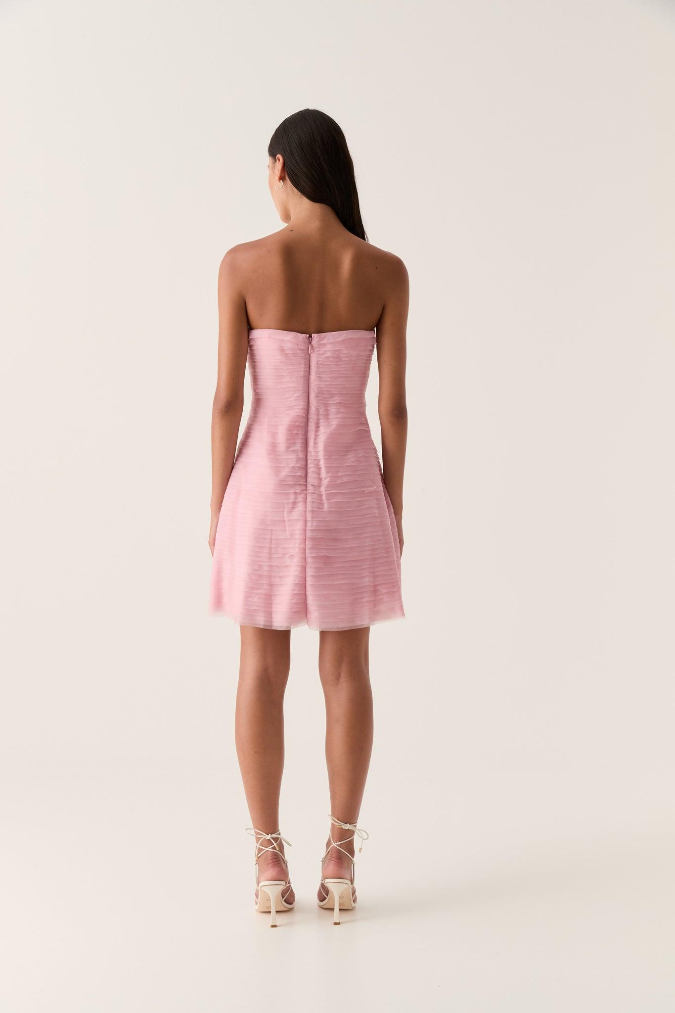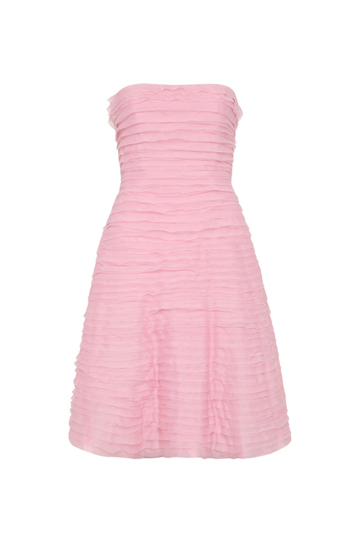 PRODUCT DETAILS Women’s mini dress Strapless neckline Fitted bodice with internal boning Raw edge frills Voluminous skirt Zip, hook and eye closure Lined Shop All Dresses SIZE AND FIT Model wears a size AU 8/S Model: 180cm/5’11 Bust: 84cm Waist: 64cm Hips: 91cm FABRICATION 100% Polyester Dry Clean only