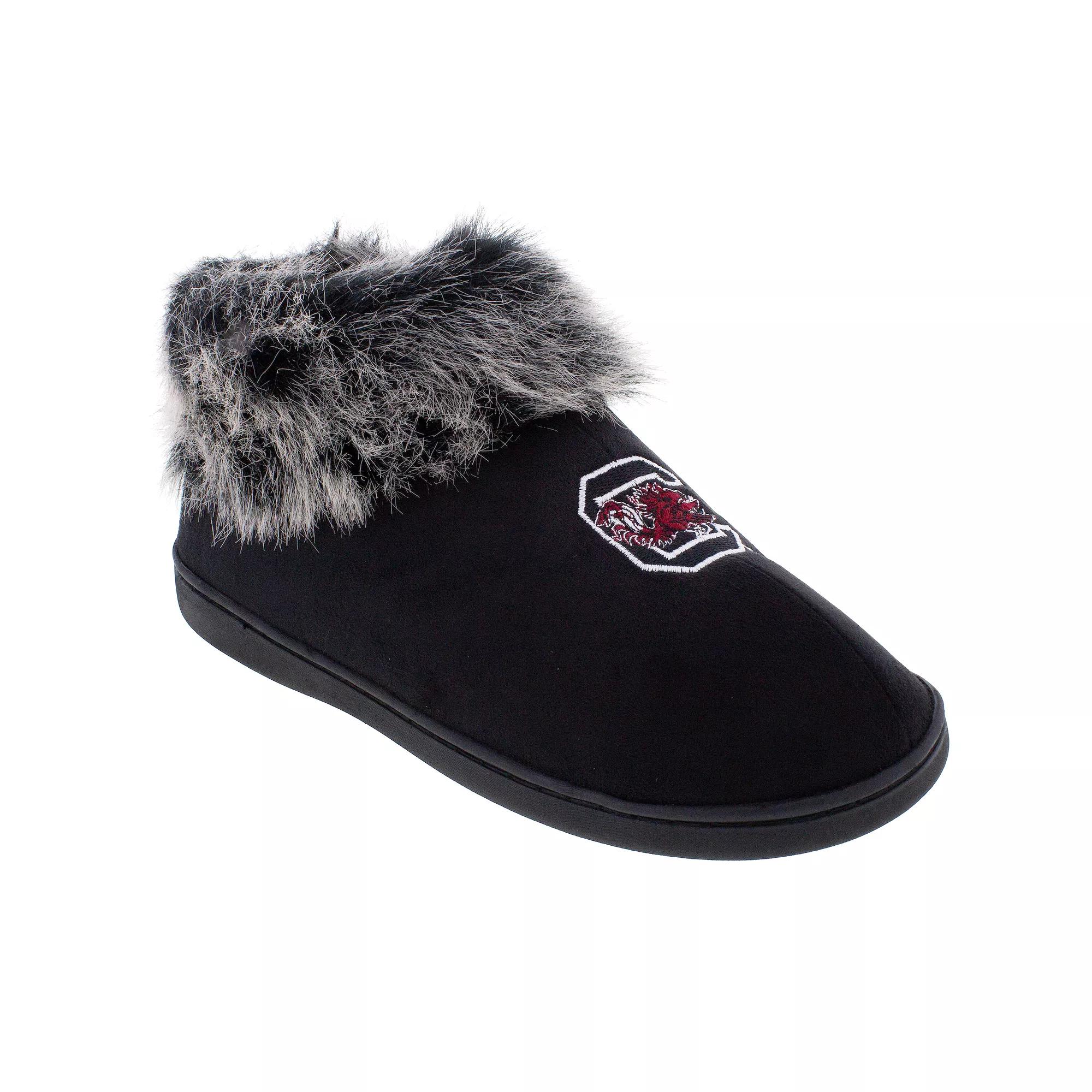 Get cozy with these South Carolina Gamecocks women's faux-fur slippers. Pull-on, Logo embroidery and team colors, Oficially licensed, Cozy faux-fur trim. FABRIC & CARE: Polyester, Rubber outsole, Spot clean, Imported. Size: M. Color: Black. Gender: female. Age Group: adult. Material: OTHER MATERIAL.