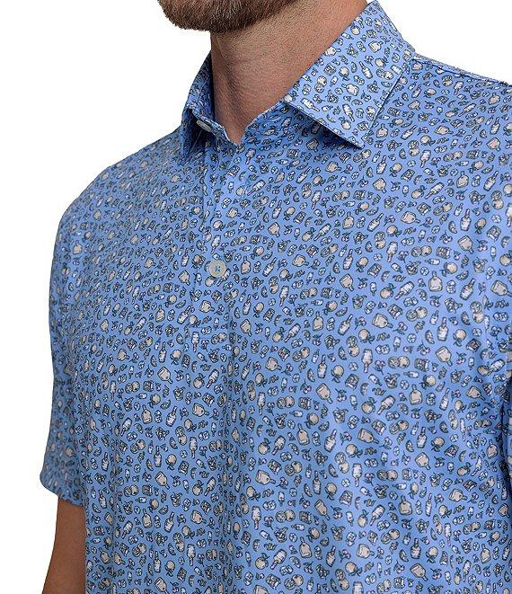 From Southern Tide, this polo shirt features: All-over print Self-collar with internal collar stays Outline Skipjack heat seal on the back neck Short sleeves 3-button placket with branded Imitation Mother-of-Pearl buttons Droptail hem Pullover construction UV Protection Moisture wicking Stretch fabric Recycled polyester/spandex Machine wash/tumble dry Imported.