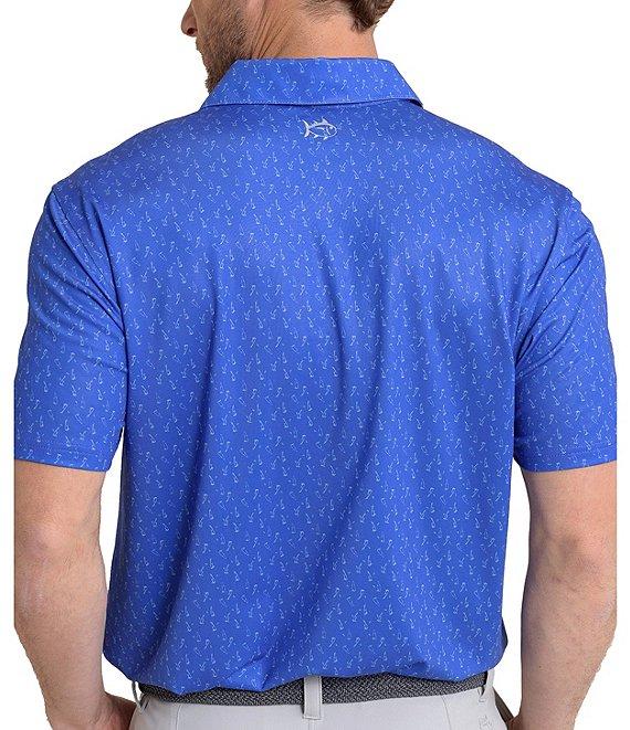 From Southern Tide, this polo shirt features: Allover print Outline Skipjack heat seal on back neck Self-fabric polo collar 3-button placket with internal collar stays Branded imitation Mother-of-Pearl buttons Droptail hem Pullover construction UV protection Moisture-wicking Stretch fabric Recycled polyester/spandex Machine wash/tumble dry Imported.