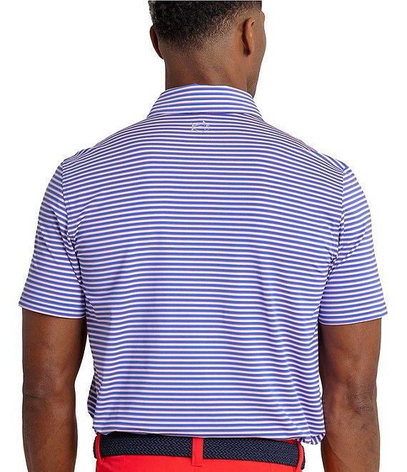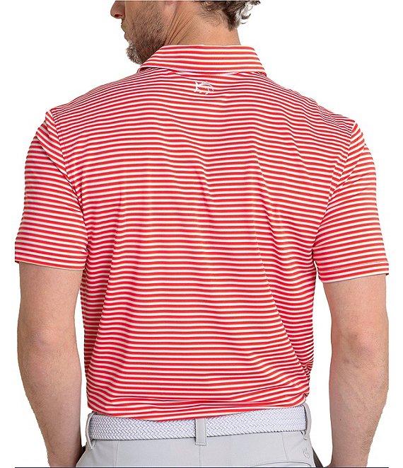 From Southern Tide, this polo shirt features: Horizontal striped pattern Outline Skipjack heat seal on back neck Self-fabric polo collar 3-button placket with internal collar stays Branded imitation Mother-of-Pearl buttons Droptail hem UV protection Moisture-wicking Stretch fabric Recycled polyester/spandex Machine wash/tumble dry Imported.