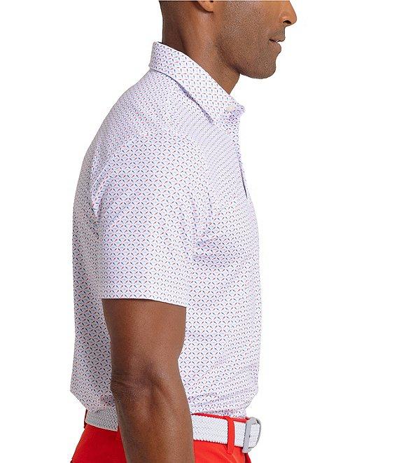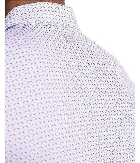From Southern Tide, this shirt features:Allover fish printOutline Skipjack heat seal on back neckSelf-fabric polo collarShort sleeves3-button placket with internal collar staysBranded imitation Mother-of-Pearl buttonsDroptail hemUV protectionMoisture wickingStretch fabricRecycled polyester/spandexMachine washImported.