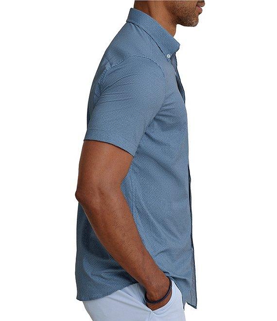 From Southern Tide, this shirt features: Allover print Button-down collar Short sleeves Button-front closure with branded imitation Mother-of-Pearl buttons Left chest pocket Skipjack flag label at bottom left hem UV protection Quick dry Moisture wicking Stretch fabric Nylon/spandex Machine wash/tumble dry Imported.