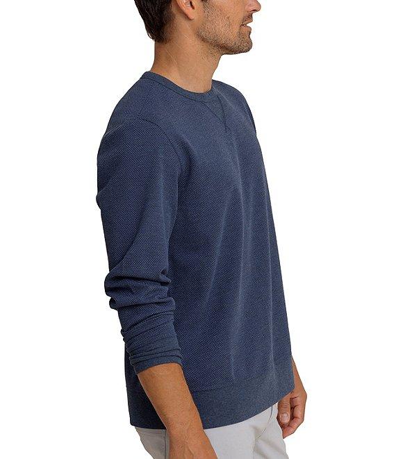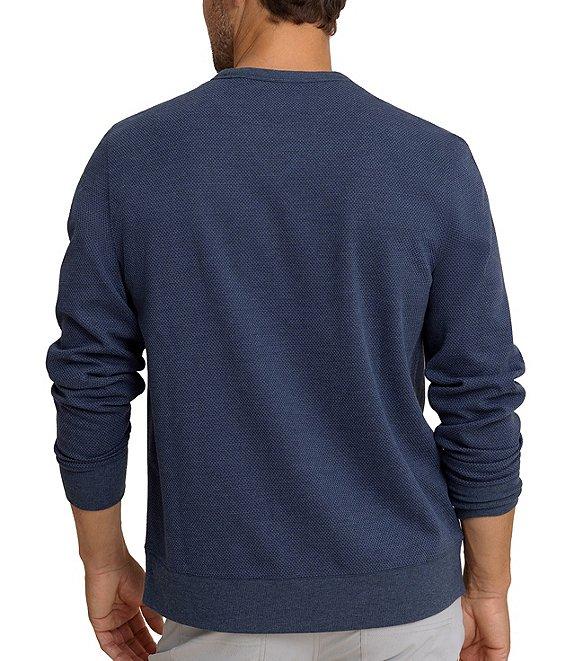 From Southern Tide, this sweatshirt features: Textured feel Crew neckline with V-stitch detail Chambray back neck tape Long sleeves Ribbed collar, cuffs, and hem Exterior "Skipack" clamp label Pullover construction Polyester/rayon/spandex Machine wash/tumble dry Imported.