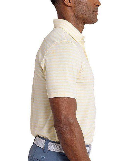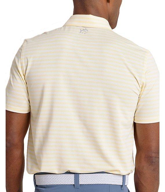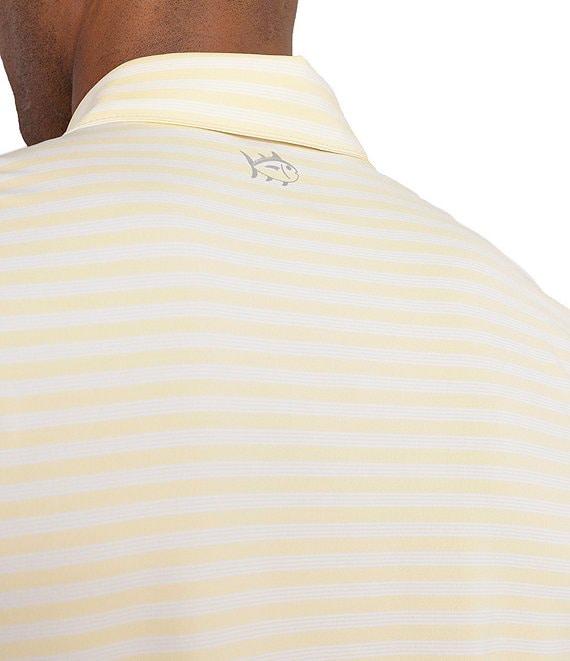 From Southern Tide, this shirt features:Horizontal, stripe patternOutline Skipjack heat seal on the back neckSelf-polo collar with internal collar staysShort sleeves3-button placketBranded imitation Mother-Of-Pearl buttonsUV protectionMoisture wickingStretch fabricRecycled polyester/spandexMachine washImported.