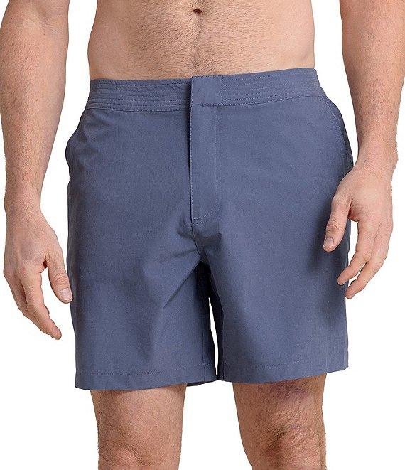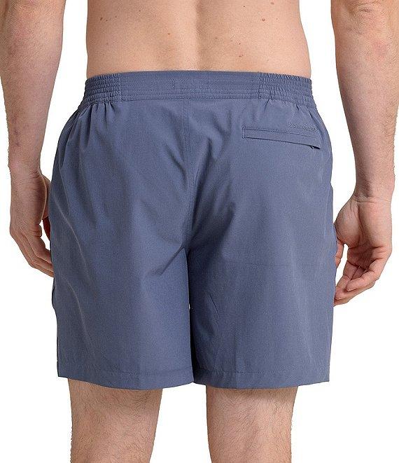 From Southern Tide, these swim trunks feature: Button/zipper closure Micromesh brief liner Front slanted hand pocket 7" inseam Back right pocket with zipper closure Signature Southern Tied embroidery above back right pockets UV protection and stretch Sustainable material and water repellent Polyester/recycled polyester/spandex Machine wash/tumble dry Imported.