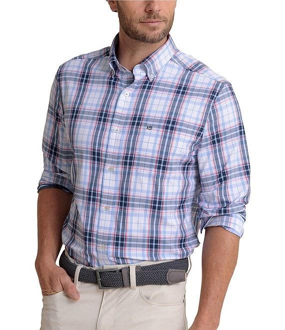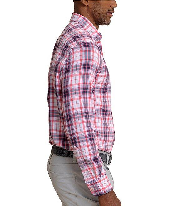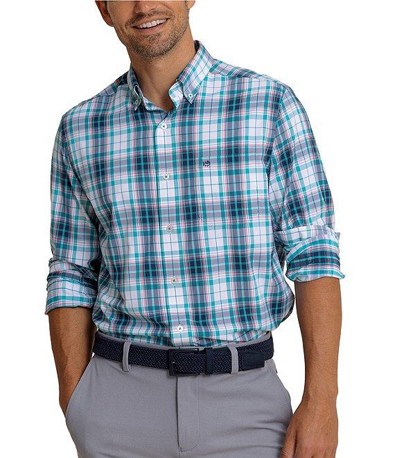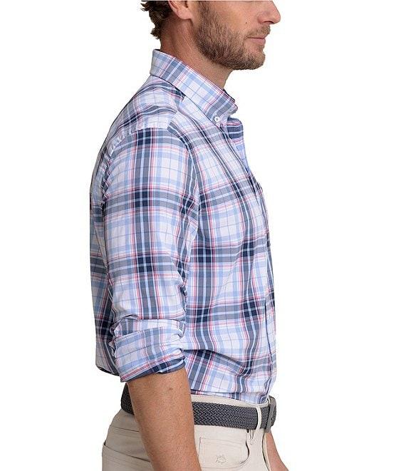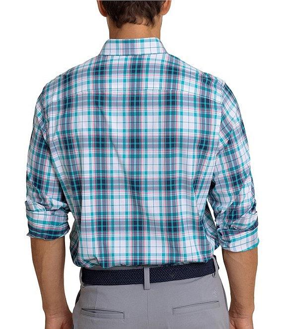 From Southern Tide, this shirt features: Plaid pattern Button-down collar Long sleeves Butt-front closure Left side patch pocket with embroidered logo Light blue bar tack on side seam at bottom hem Moisture-wicking UV protection Stretch Nylon/spandex Machine wash/tumble dry Imported.