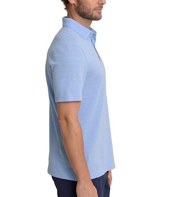 From Southern Tide, this polo shirt features: Thin, horizontal stripe patter Self polo collar with covered placket Internal collar stays 3-button placket Outline Skipjack heat seal on back neck Short sleeves Branded imitation Mother-of-Pearl buttons Droptail hem Pullover construction Stretch fabric Cotton/lyocell/elastane Machine wash/tumble dry Imported.