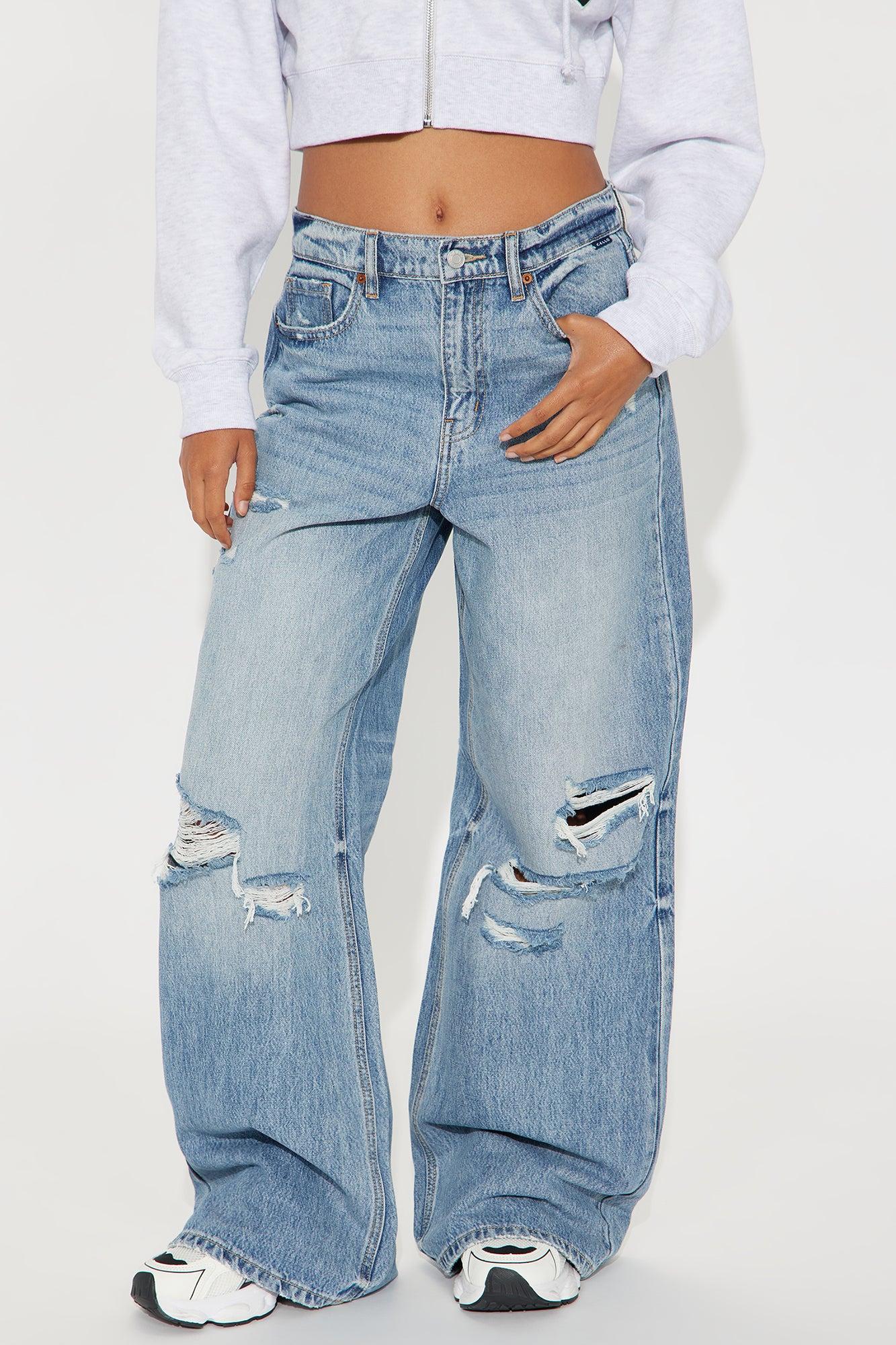 Available In Dark Wash And Light Wash. Baggy Wide Leg 5 Pocket Ripped Authentic Denim 11.75" High Waist 32" Inseam Non Stretch Disclaimer Due To The Specialized Wash And Distressing Process, Each Garment Is Unique 100% Cotton Imported
