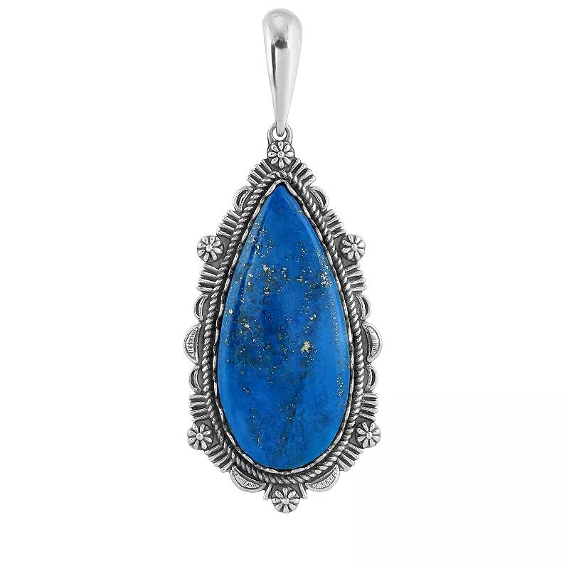 Add a little Southwest flair to your outfit of the day with this sterling silver and denim lapis pear pendant from Southwest Spirit. Click on this JEWELRY & WATCHES GUIDE to learn about fit, styles, materials and more! Add a little Southwest flair to your outfit of the day with this sterling silver and denim lapis pear pendant from Southwest Spirit. Click on this JEWELRY & WATCHES GUIDE to learn about fit, styles, materials and more! FEATURES No chain included, pendant only Charm size: 70 mm x 27 mm Nickel free Metal: sterling silver Finish: polished Packaging: velvety pouchSTONE DETAILS Stone type: lapis Center stone size: 40 mm x 18 mm Shape: pear Setting: bezel Gemstones may have been treated to enhance their appearance. Special care may be required. Please visit our Gemstone Treatment & Special Care Guide for more information. Size: One Size. Gender: female. Age Group: adult.
