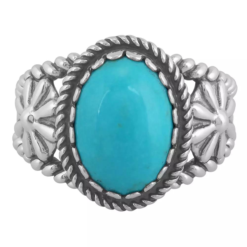 Add a little Southwest flair to your outfit of the day with this sterling silver and green turquoise concha ring from Southwest Spirit. Click on this JEWELRY & WATCHES GUIDE to learn about fit, styles, materials and more! Add a little Southwest flair to your outfit of the day with this sterling silver and green turquoise concha ring from Southwest Spirit. Click on this JEWELRY & WATCHES GUIDE to learn about fit, styles, materials and more! FEATURES Ring width: 13.5 mm Shank style: straight Band fit: flat Nickel free Metal: sterling silver Finish: polished Packaging: velvety pouchSTONE DETAILS Stone type: turquoise Total weight: 4 1/2 ct. Center stone weight: 4 7/8 ct. Center stone size: 14 mm x 10 mm Shape: oval Setting: bezel Gemstones may have been treated to enhance their appearance. Special care may be required. Please visit our Gemstone Treatment & Special Care Guide for more information. Size: 6. Gender: female. Age Group: adult.