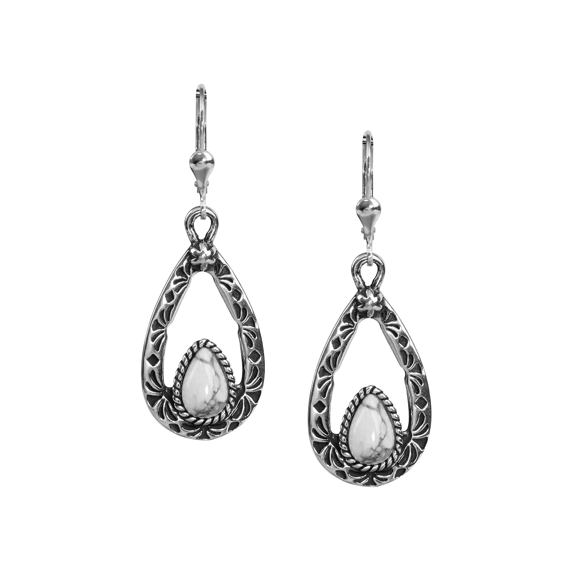 Add a little Southwest flair to your outfit of the day with these sterling silver and stone drop earrings from Southwest Spirit. Click on this JEWELRY & WATCHES GUIDE to learn about fit, styles, materials and more! Add a little Southwest flair to your outfit of the day with these sterling silver and stone drop earrings from Southwest Spirit. Click on this JEWELRY & WATCHES GUIDE to learn about fit, styles, materials and more! FEATURES Earring size: 46 mm x 16 mm x 4 mm Closures: leverback Nickel free Metal: sterling silver Finish: polished Packaging: velvety pouchSTONE DETAILS Stone: tigers eye, white howlite Center stone weight: 3 1/10 ct.; 2 7/8 ct.; 2 5/8 ct. Center stone size: 9 mm x 6 mm Shape: round, pear Setting: bezel Gemstones may have been treated to enhance their appearance. Special care may be required. Please visit our Gemstone Treatment & Special Care Guide for more information. Size: One Size. Gender: female. Age Group: adult.