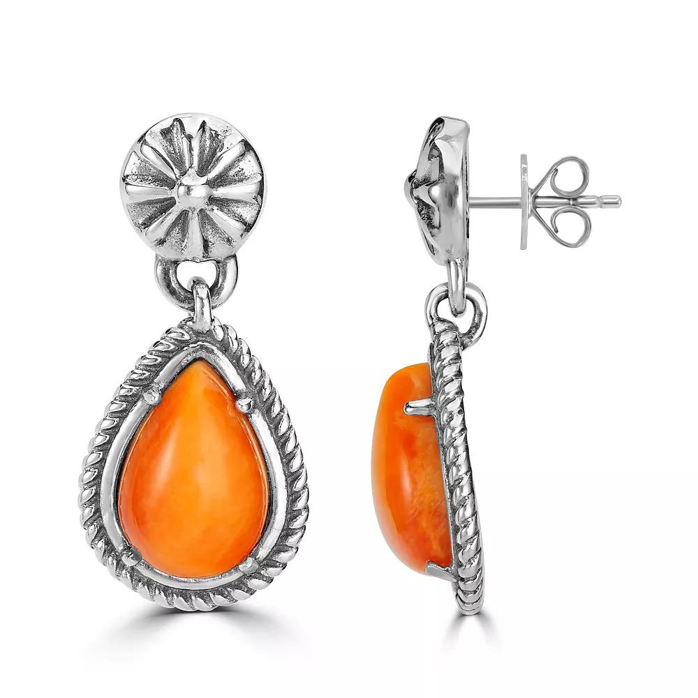 Add a little Southwest flair to your outfit of the day with these sterling silver and stone pear drop earrings from Southwest Spirit. Click on this JEWELRY & WATCHES GUIDE to learn about fit, styles, materials and more! Add a little Southwest flair to your outfit of the day with these sterling silver and stone pear drop earrings from Southwest Spirit. Click on this JEWELRY & WATCHES GUIDE to learn about fit, styles, materials and more! FEATURES Earring size: 13 mm x 11 mm x 5 mm Backings: post Nickel free Metal: sterling silver Finish: polished Packaging: velvety pouchSTONE DETAILS Stone: orange spiny oyster, lapis Center stone weight: 3 5/8 ct.; 4 1/3 ct. Center stone size: 10 mm x 7 mm Shape: pear Setting: prong Gemstones may have been treated to enhance their appearance. Special care may be required. Please visit our Gemstone Treatment & Special Care Guide for more information. Size: One Size. Gender: female. Age Group: adult.