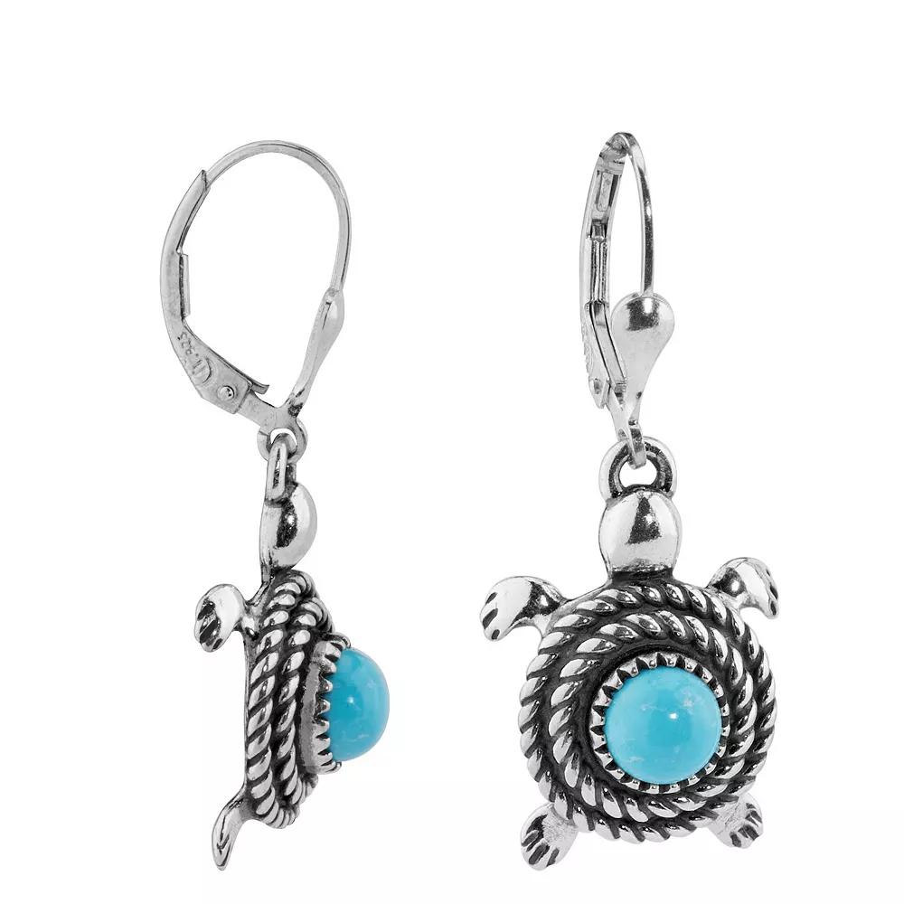 Add a little Southwest flair to your outfit of the day with these sterling silver and turquoise spirit turtle earrings from Southwest Spirit. Click on this JEWELRY & WATCHES GUIDE to learn about fit, styles, materials and more! Add a little Southwest flair to your outfit of the day with these sterling silver and turquoise spirit turtle earrings from Southwest Spirit. Click on this JEWELRY & WATCHES GUIDE to learn about fit, styles, materials and more! FEATURES Earring size: 38 mm x 15 mm x 5.5 mm Closures: leverback Nickel free Metal: sterling silver Finish: polished Packaging: velvety pouchSTONE DETAILS Stone: turquoise Center stone weight: 1 5/8 ct. Center stone size: 6 mm x 6 mm Shape: round Setting: bezel Gemstones may have been treated to enhance their appearance. Special care may be required. Please visit our Gemstone Treatment & Special Care Guide for more information. Size: One Size. Gender: female. Age Group: adult.