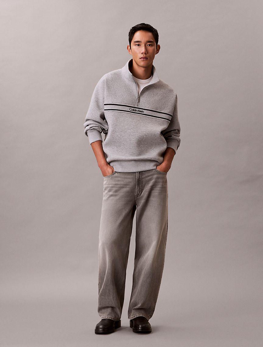 A relaxed, quarter-zip sweatshirt with a smooth hand. Printed with the signature logo at the upper chest. Designed with long sleeves and banded sleeve cuffs.