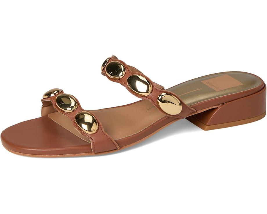 Spade Flower Stud Pebbled Leather Flat Sandals