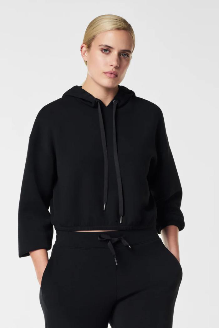 Luxurious comfort that goes anywhere. This super-soft hoodie features a waist-skimming length with just the right amount of coverage and an elasticized hem for a cinched look. In a relaxed fit for easy layering. Made from our AirEssentials spacer fabric that’s lightweight and drapey.