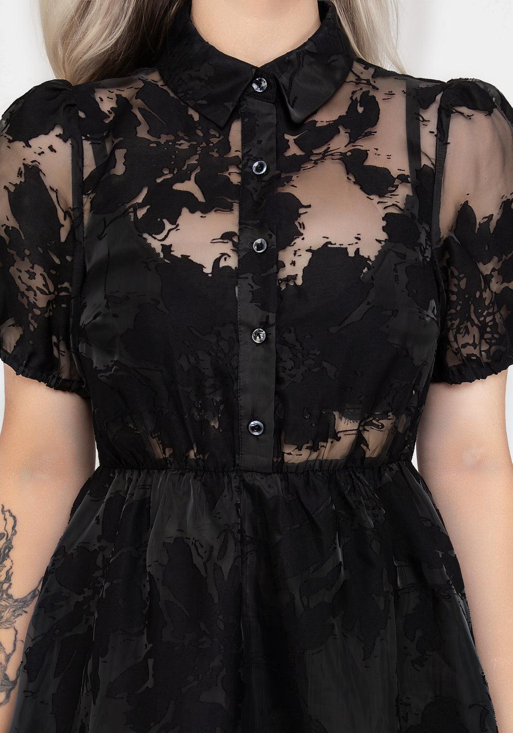 Babe wake up, a new Ghost Outfit just dropped - Black floral devore organza midi shirt dress - Flattering fit ‘n’ flare shape with a dramatic layered midi-length skirt - Dainty collar & short puff sleeves for snappy styling - Functional buttoned placket on bodice features black velour domed buttons - Gloriously sheer floral devore organza fabric with tulle skirt layers to add volume - Burnout floral design adds a ghostly imprinted design - Layer with bralets, bodysuits, or slip dresses for a little more coverage - If you’re gonna spend an eternity wearing one thing... make it *this dress* Main: 100% polyesterContrast: 100% polyamide Tanya is 5'5" and wearing a UK8/ US4