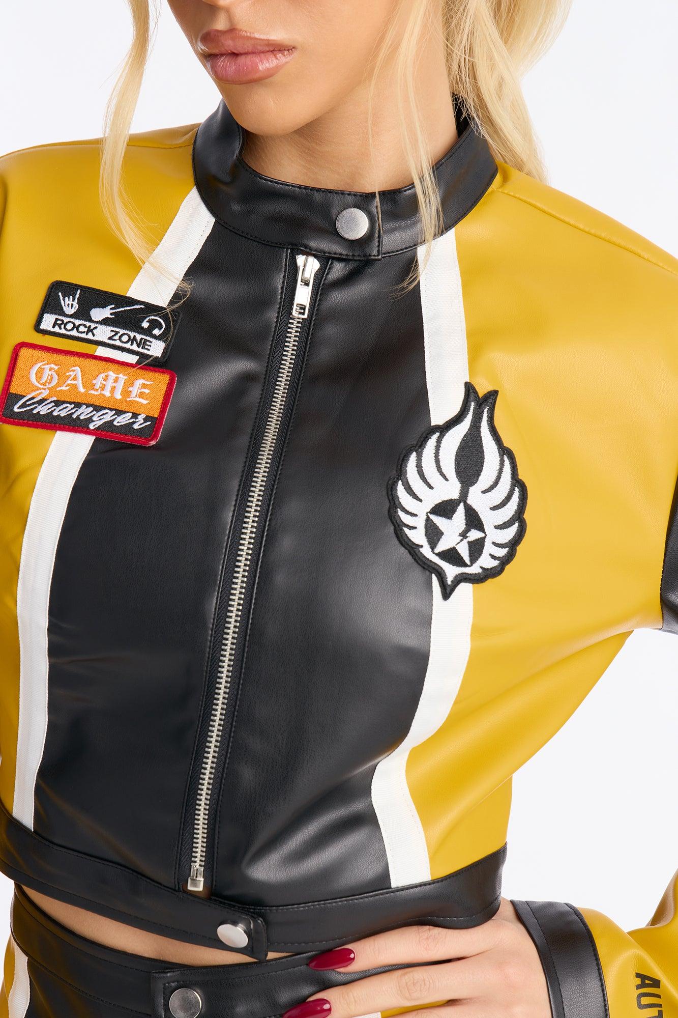 Available In Yellow/combo. 2 Piece Ensemble Zip Up Jacket And Short Set Moderate Stretch Lined Jacket Snap Button Closure With Fly Zipper On Short Self: 100% Polyester with Polyurethane Coating Lining: 100% Polyester Imported California Proposition 65WARNING: Cancer and Reproductive Harm - www.P65Warnings.ca.gov.