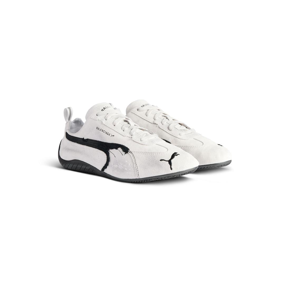 Speedcat Suede Balenciaga in white and black distressed suede cowskin