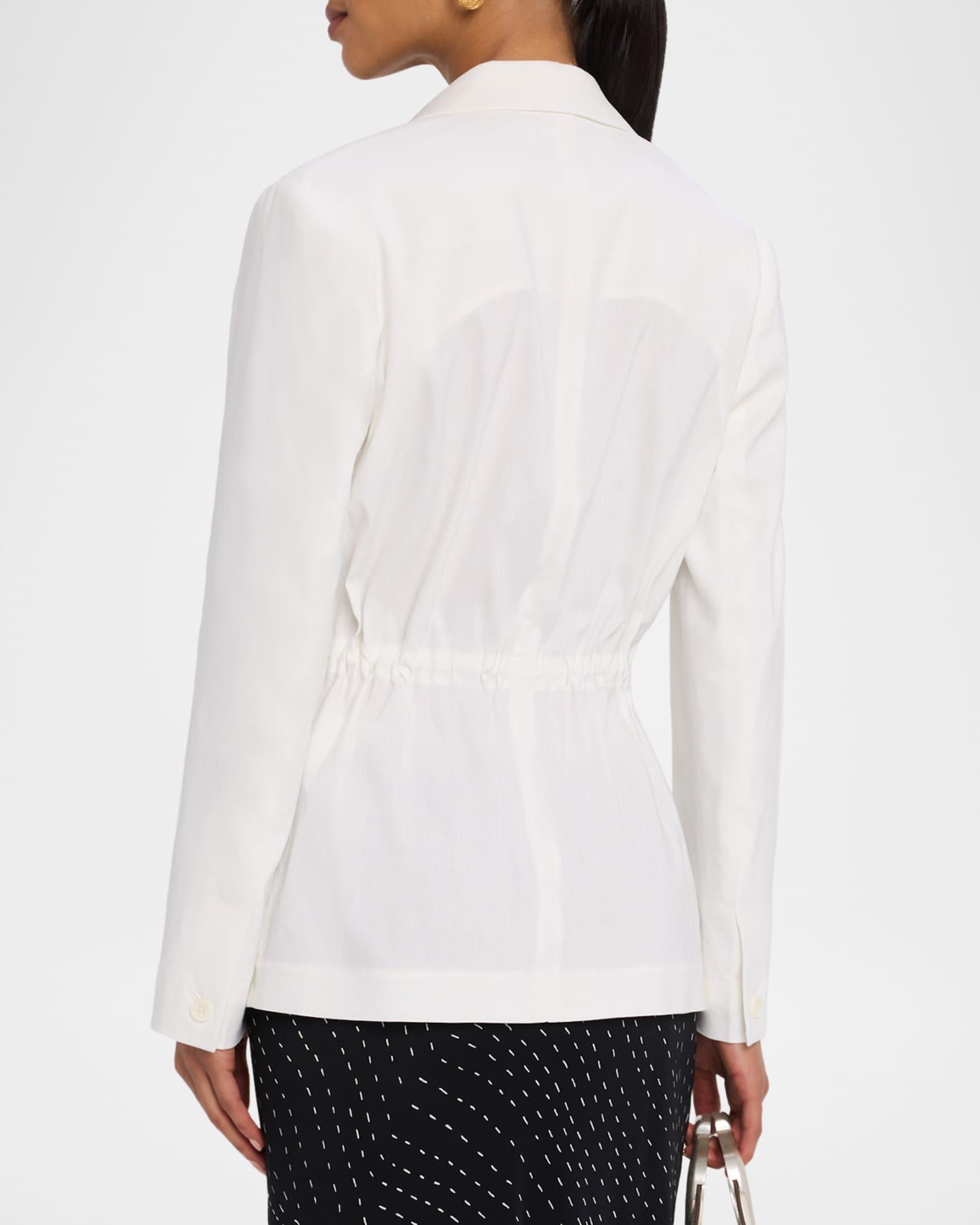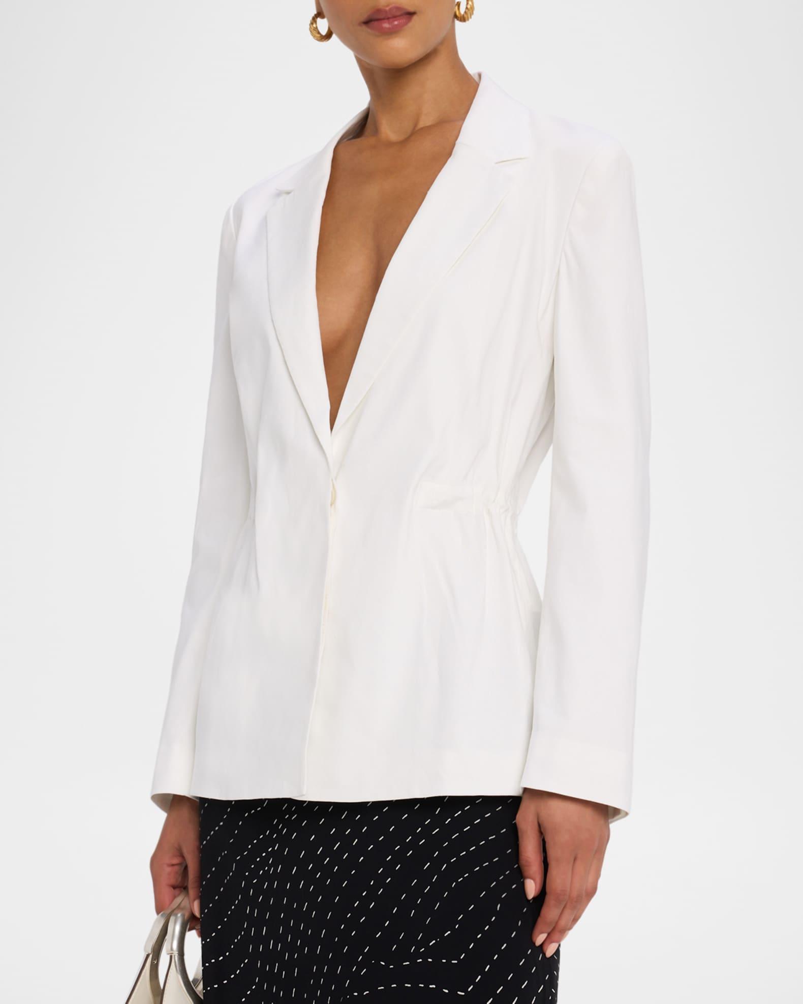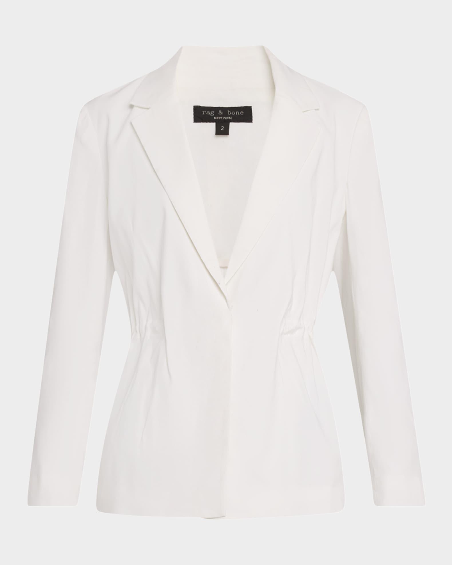 Rag & Bone "Spencer" single-breasted blazer in linen Notched lapels Long sleeves with button cuffs Inner adjustable drawstring waist Tailored fit Concealed button-front Linen/viscose/elastane Lining: Polyester/viscose Dry clean only Imported