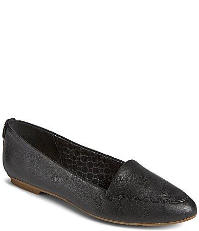 From Sperry, the Piper Leather Loafer Ballet Flats feature:Premium leather upper with box stitchingSlip on closureHeel tab with branded metal rivetLeather and textile liningOrthoLite footbedFlexible rubber lug outsoleFlat heelImported.