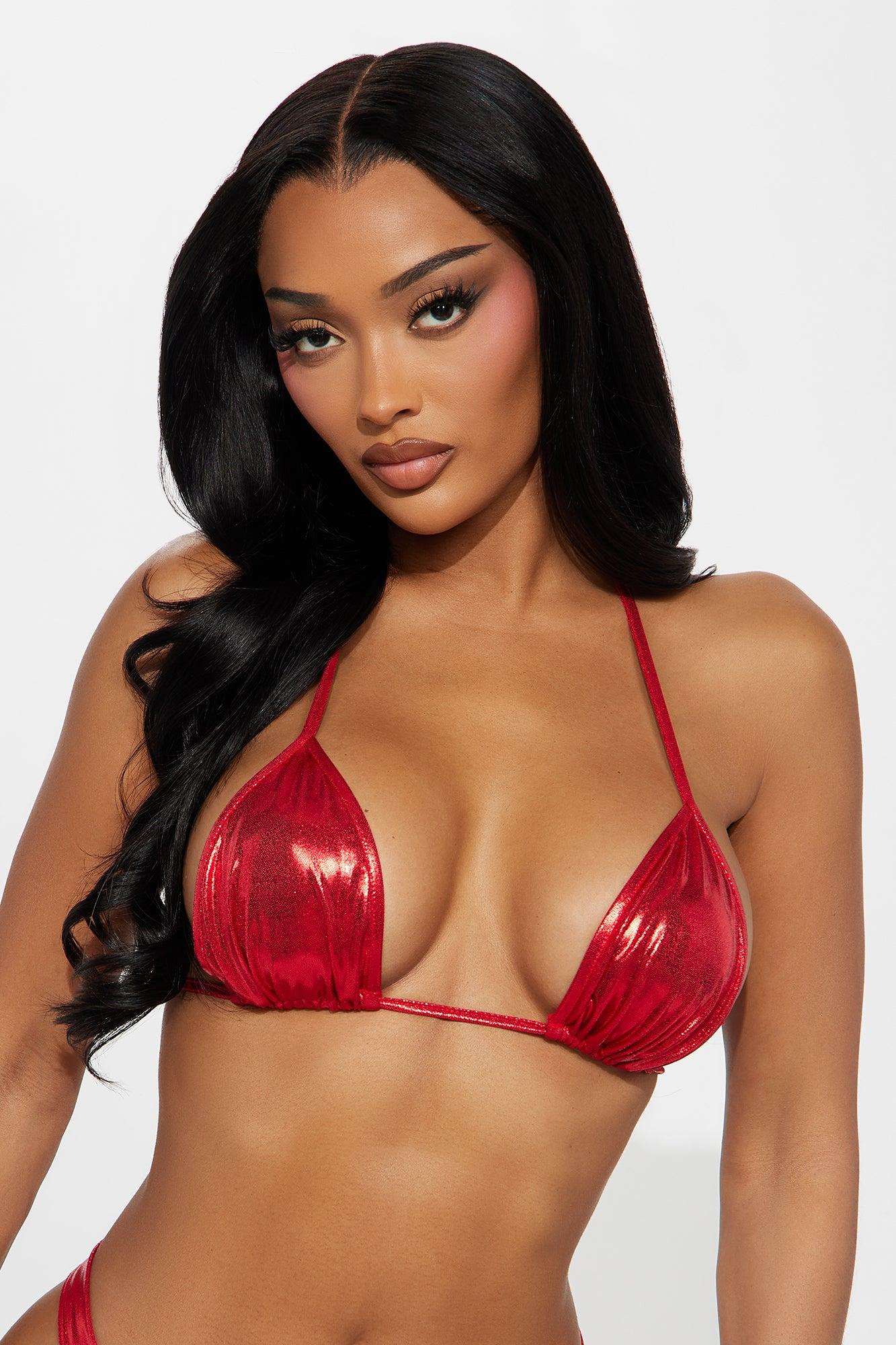 Available In Blue, Green, Purple And Red. Triangle Top One Size Fits Most Adjustable Straps Non Padded Sparkle Detail No Underwire Stretch Final Sale Self: 82% Nylon 18% Spandex Imported California Proposition 65WARNING: Cancer and Reproductive Harm - www.P65Warnings.ca.gov.