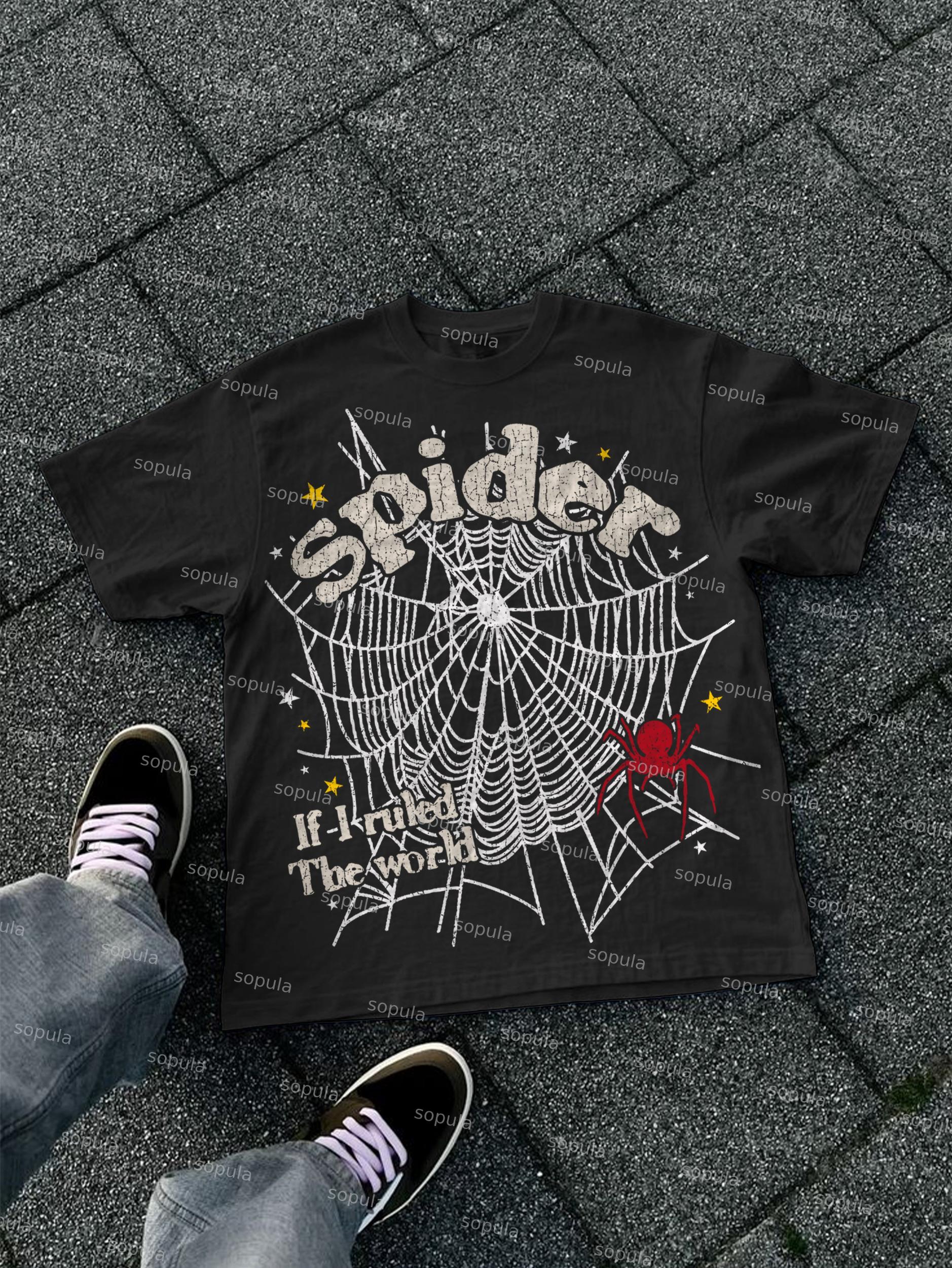 Spider Web If I Ruled The World Vintage Graphic Cotton T-shirt. SPU: CP-241063-HEX Fabric: 100% Cotton Fabric Weight: 180g Pattern: Spider Web If I Ruled The World Process: Printed Gender: Women,Men Season: Summer Size Range: S-3XL Color: White,Apricot,Black Print Position: Front