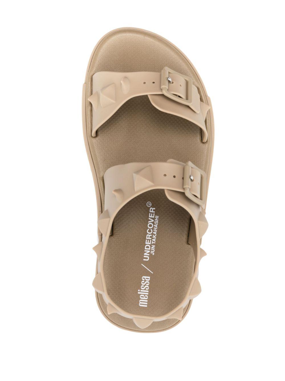 Melissa x Undercover spike-stud flat sandals | Neutrals | beige | spiked stud design | double buckle fastening | open toe | round toe | slingback strap | branded insole | flat sole | PVC/PVC/PVC | Flat Sandals | Sandals | Shoes | Women | Sandals | Shoes | Men