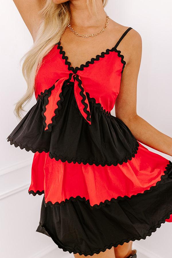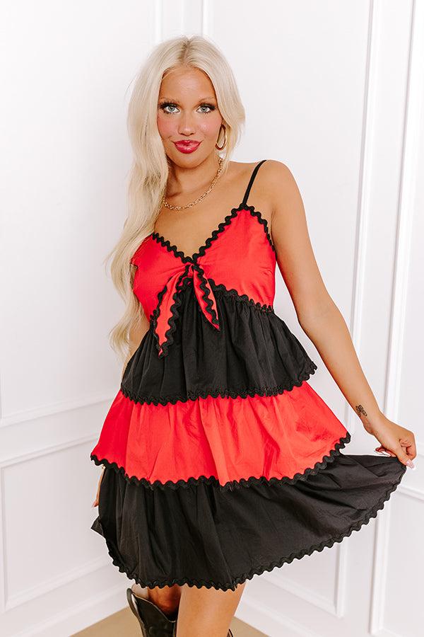 - Get all dolled up in this cutie! Show your team spirit with our vibrant clothing collection inspired by the bold colors of popular college football teams like the Arkansas Razorbacks, Arkansas State Red Wolves, Texas A&M Aggies, Texas Tech Red Raiders, and the University of Georgia Bulldogs. - Fully lined material - Rick rack accents - A v-cut neckline - An accent bow - Adjustable spaghetti straps - A smocked back detail - Back zip closure - A flowy tiered silhouette that ends in a mini dress length hemline - This piece is perfect for fans of Arkansas, Georgia, Texas Tech, Alabama, Oklahoma, and more!