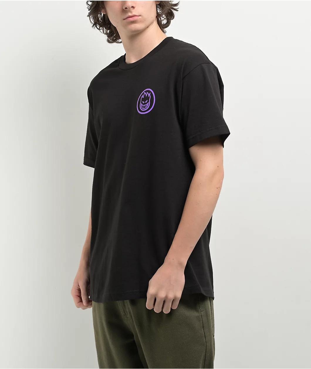 Skate brand Spitfire presents the Classic Smoke t-shirt in a black colorway perfect for a casual outfit. Purple graphics on the back showcase the brand's iconic Bighead logo in the center of three rings of purple smoke for a look reminiscent of Spitf