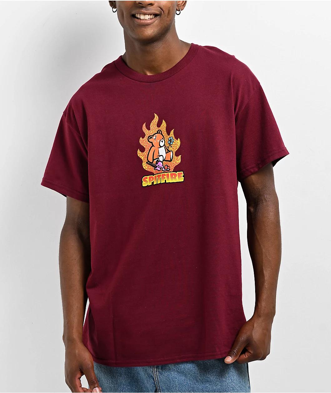 From Spitfire Wheels, the Lil Beatdowns t-shirt lands in a dark red maroon hue with a 100% cotton build and a screened graphic on the front. Referencing the new miniature skateboard wheels released by the San Francisco-based company, an illustration
