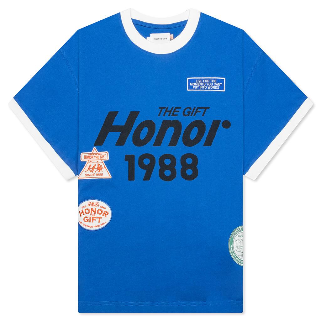 Honor The Gift releases the Multi Box Tee in their latest drop. Cut from heavyweight cotton with a boxy fit, this tee features a crew neckline and contrast binding. Finished with screen-printed graphics and woven patches for dimensional character. 100% Cotton Boxy fit Crew neckline Contrast binding Screen-printed graphics Woven patches Style No: HTG250247-BLU HTG250247 B