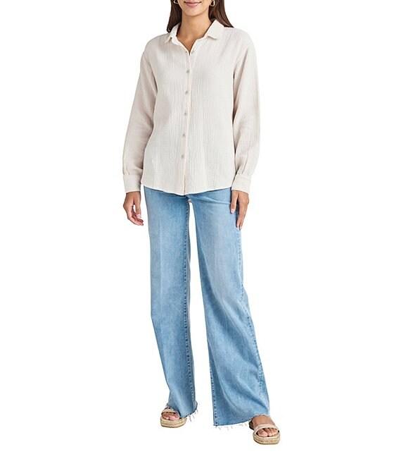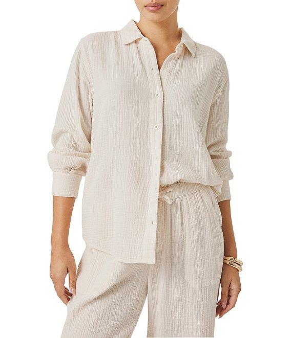 Splendid Adele Point Collar Long Sleeve Button Front Gauze Shirt