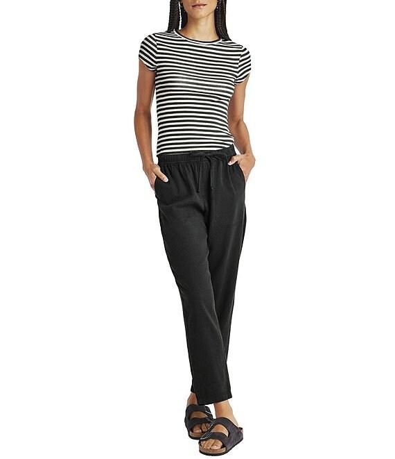 From Splendid, these pants feature: Straight leg silhouette Functional front & back pockets Pull-on construction with front drawstring closure Approx. 26.5" in length Lyocell/linen/elastane Machine wash/line dry Imported.